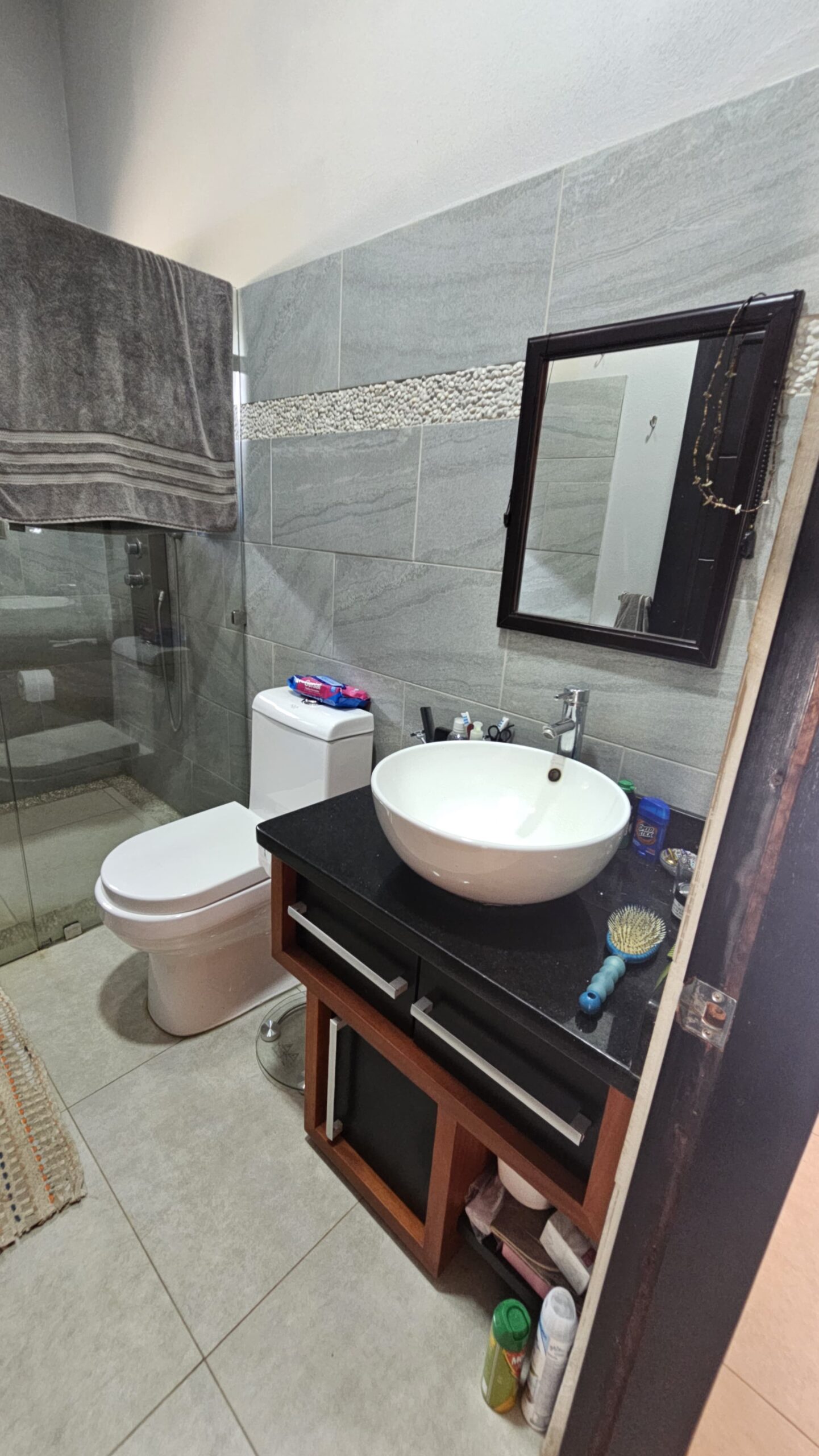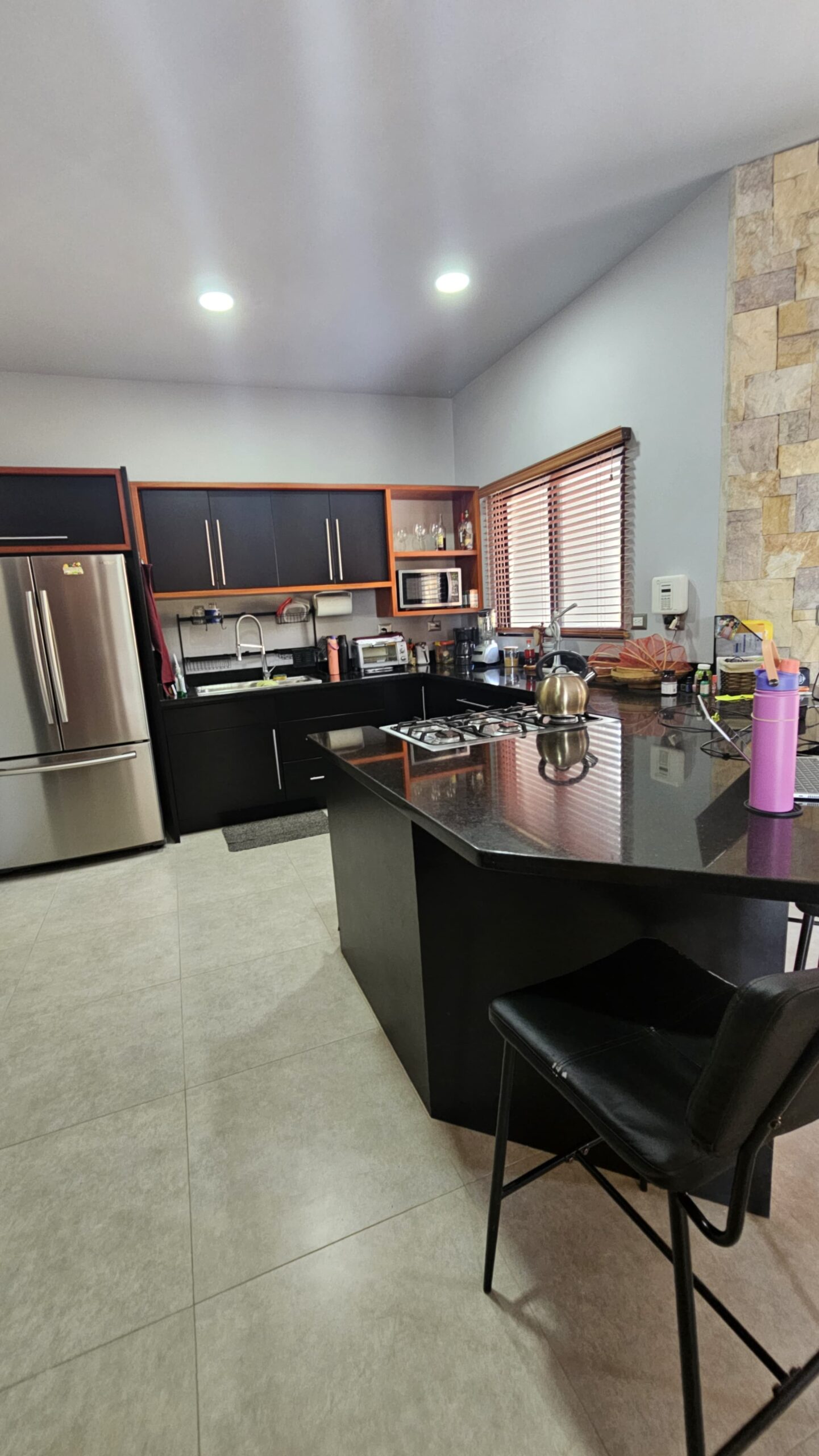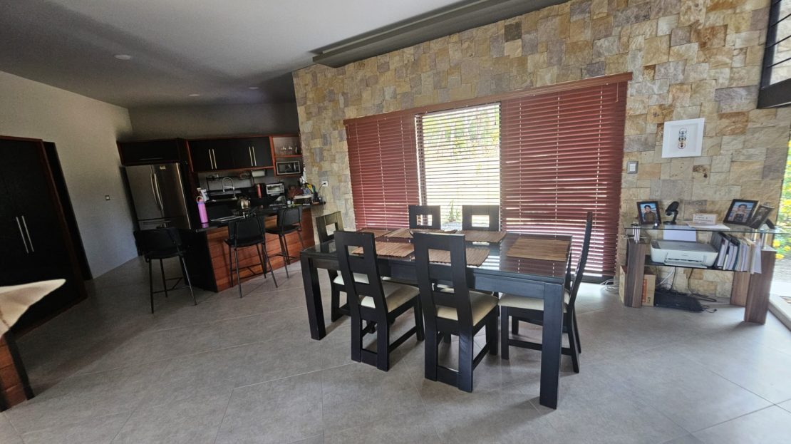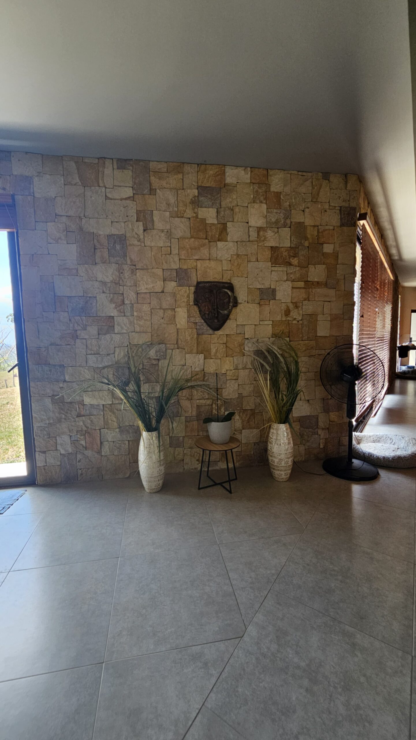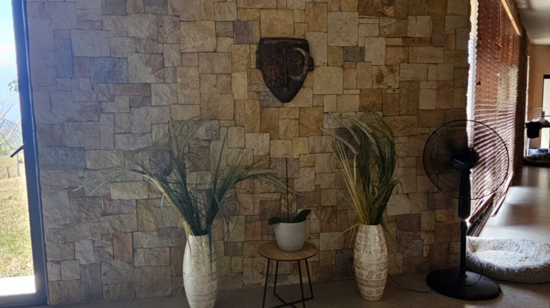 ✔ Expansive living area, adorned with stunning stone wall details, ideal for relaxation and entertaining.