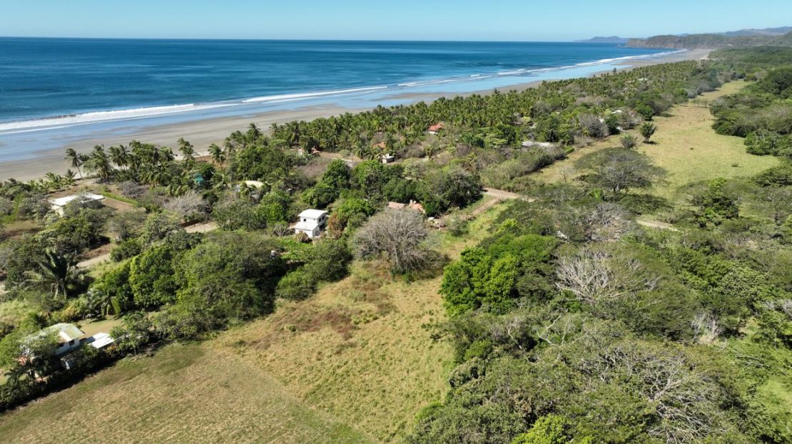 El terreno es plano y totalmente aprovechable, combinando áreas abiertas con árboles nativos de buen tamaño que brindan sombra y belleza natural. Desde la propiedad se percibe claramente la cercanía al océano y se disfrutan las brisas marinas en un entorno tranquilo y poco desarrollado.
