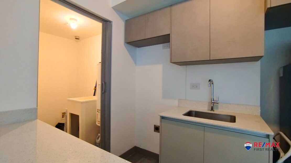 This 2-bedroom, 2-bath condo sits on the 5th floor of a 17-storey residential tower delivered in September 2024; barely lived in, it shows like new. The unit offers open-plan living with balcony and a dedicated stall in the building’s automated garage – a rare perk in high-density Escalante.