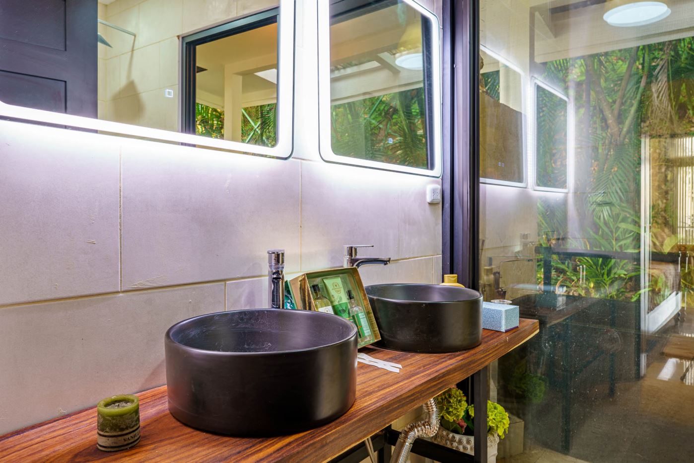 Landscaped lush gardens with fruit trees like papaya, banana, avocado, lemon, etc.