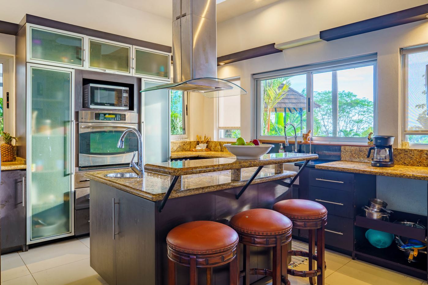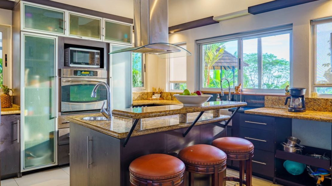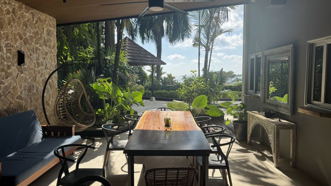 Excelentes vistas al mar y al surfSonido de las olas rompiendo día y nocheCasa principal de 2 plantas recién renovada3 dormitorios principales, 4 baños, uno con bañera exteriorPiscina principal y de inmersión con azulejos azules y una pequeña cascada4 espacios exteriores cubiertos, incluyendo zona de barbacoa con bar y refrigeradorZona de barbacoa/comedor junto a la piscina recientemente renovada con vistas al mar2 porches y un gazebo junto a la piscina. Garaje independiente para 2 autos con espacio de almacenamiento, luz y agua.Exuberantes jardines con árboles frutales como papaya, plátano, aguacate, limón, etc.Condominio cerrado y seguro con seguridad nocturna; puerta principal y personal con control remoto.Sistema de alarma y cámaras de internet de alta calidad.Incluye: