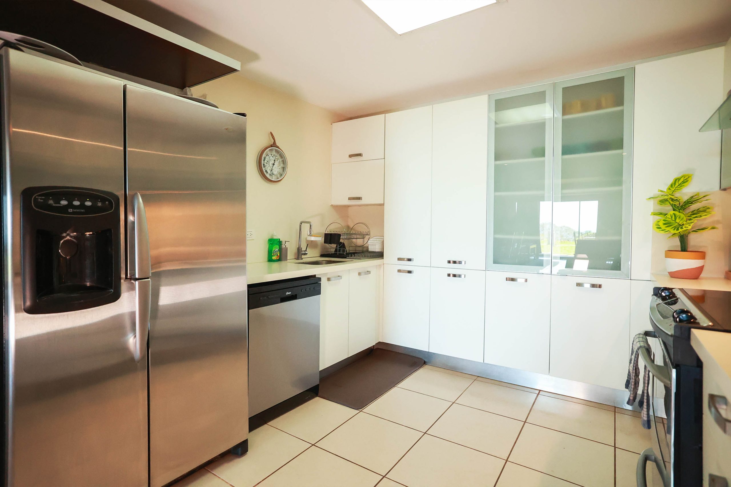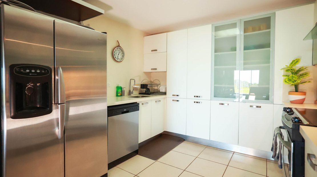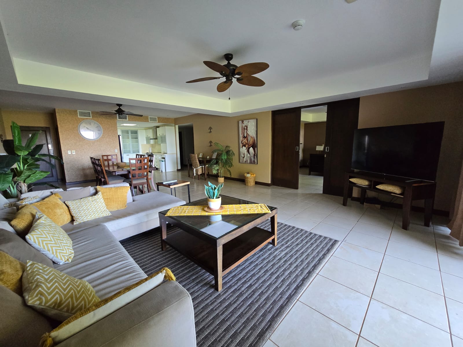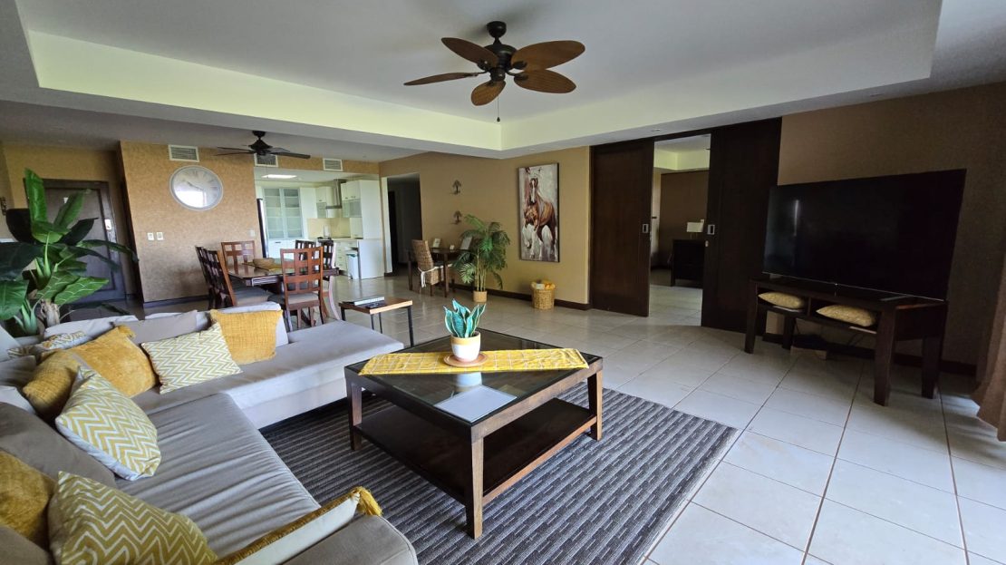 The residence is fully furnished and designed for comfort. The open-concept living and dining area extends onto a private terrace surrounded by tropical gardens, creating a seamless indoor-outdoor flow. Natural light fills the space, enhanced by central air conditioning and elegant finishes. Each bedroom provides privacy, ample storage, and tranquil garden views.