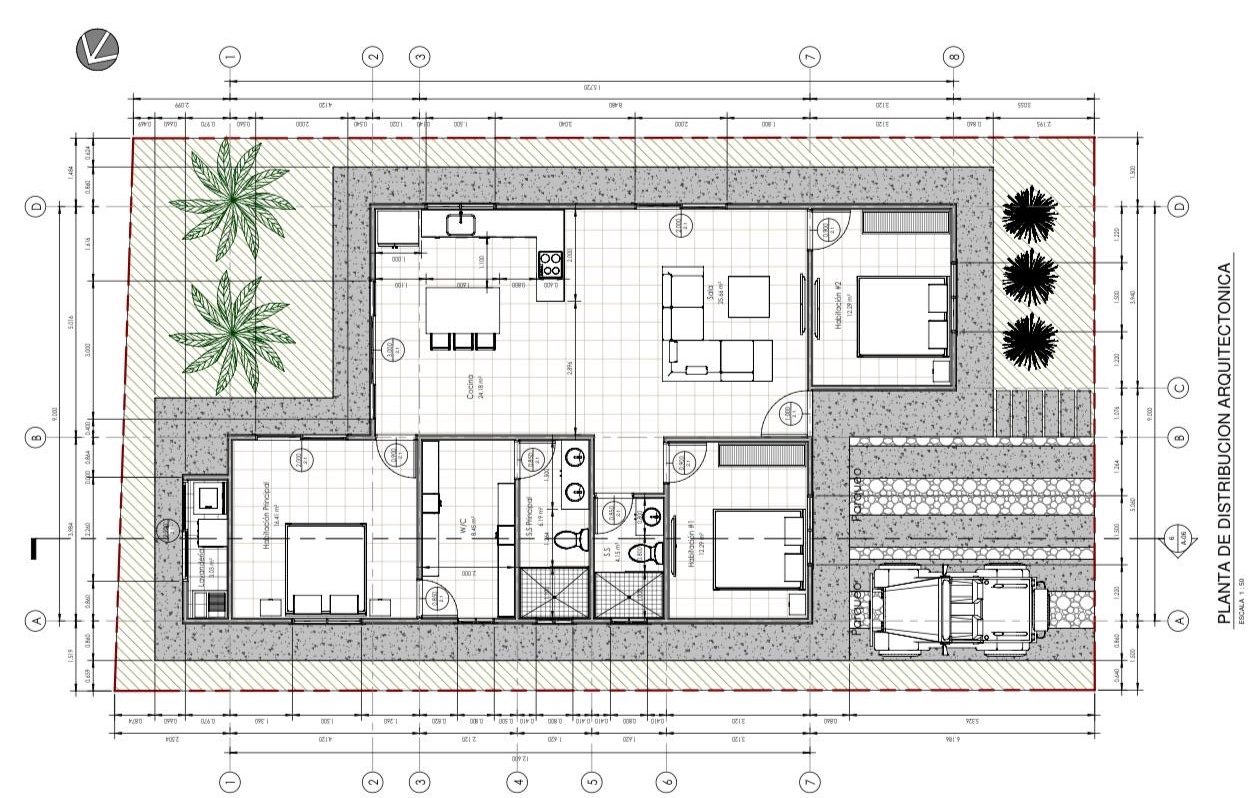 Casa Carara se asienta en un lote con un área de 249 metros cuadrados.