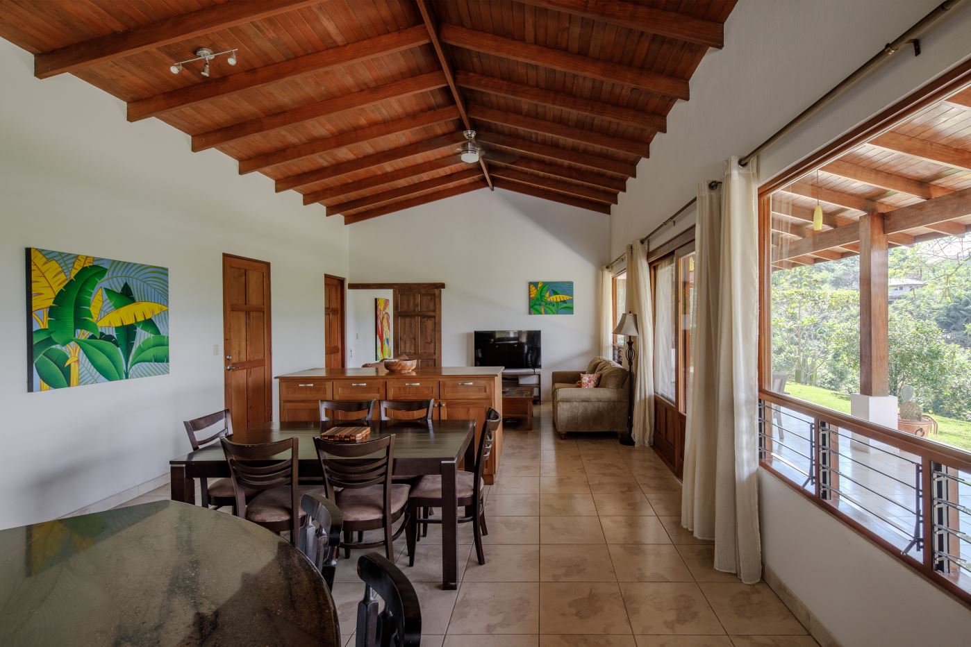 At the opposite end of the property is the smallest 170m2 guest home with its own independent entrance that leads way to a nicely laid out 2 bedroom/2 bathroom home also deisgned with artesenal woodwork thoughout with a small porch area with plenty of room to sit under roof. The home has a nice size side porch area with its own manicured gardens. This home is sold fully-furnished with appliances.