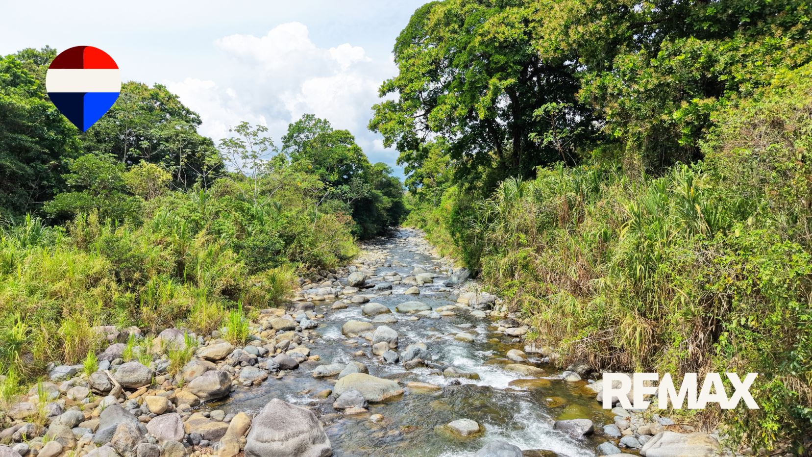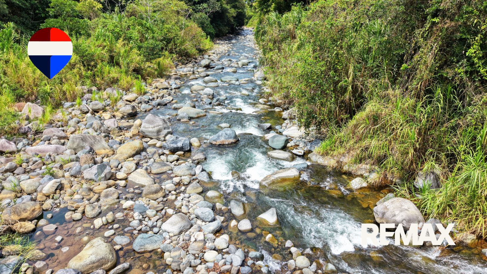 Terreno mayormente plano, ideal para urbanizar. Dos manantiales naturales. Río que bordea la parte trasera de la propiedad. Acceso directo desde carretera asfaltada (comodidad durante todo el año).
