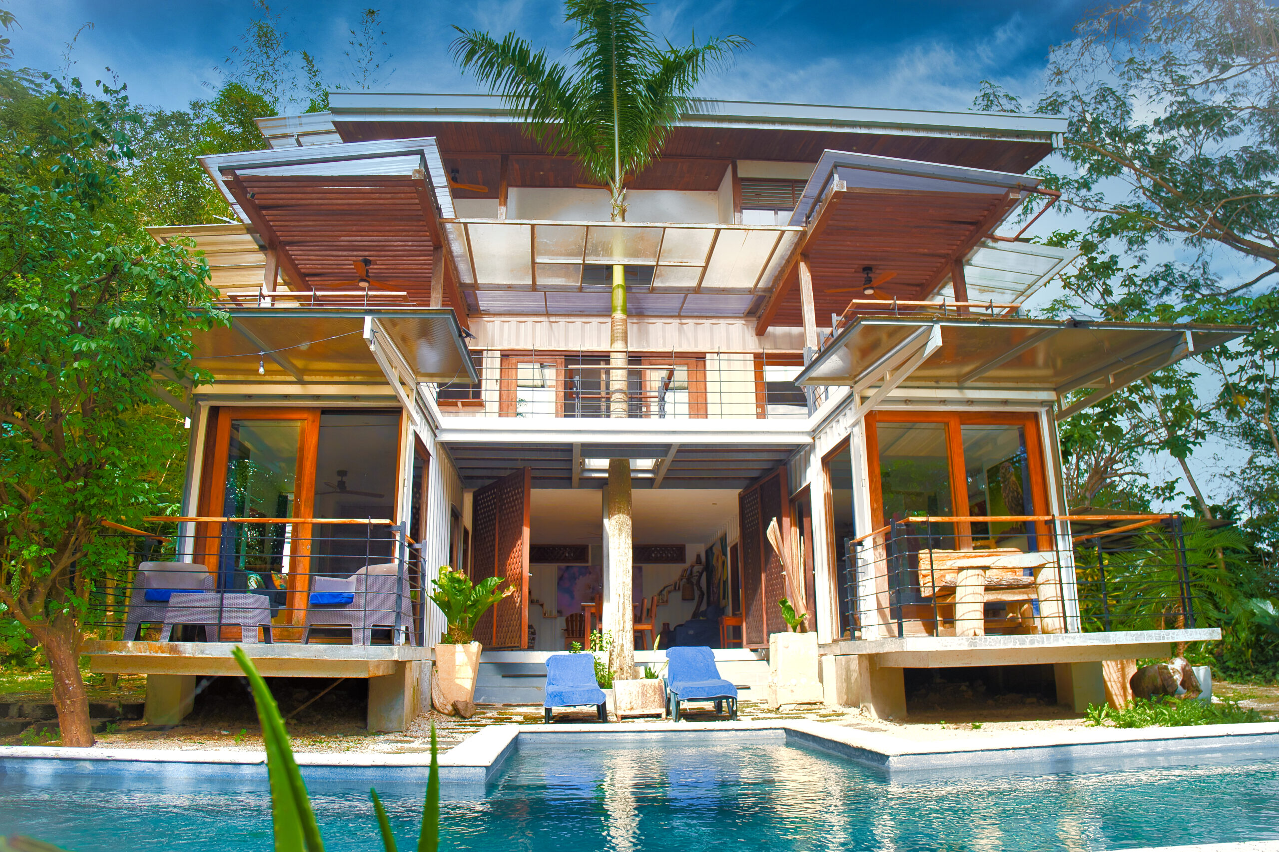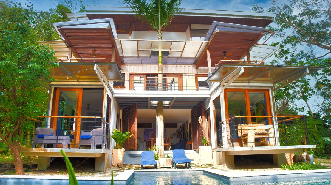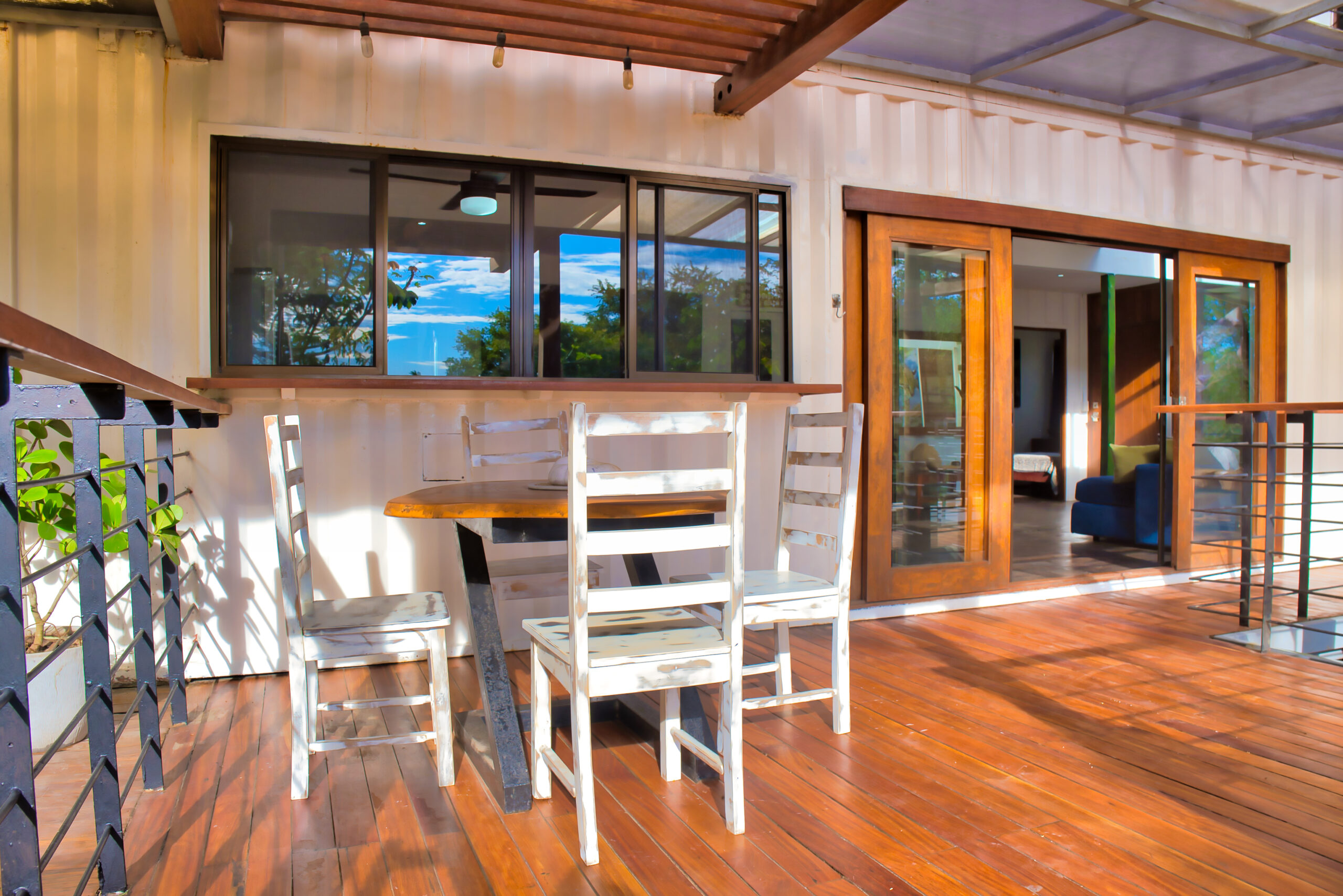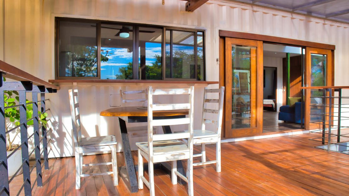 Jawa Ecolodge blends authentic eco-living with elegance and comfort. Thoughtfully designed with sustainability in mind, it incorporates recycled shipping containers, natural stone, reclaimed wood, and minimal concrete to minimize its environmental footprint. The main lodge offers flexible accommodations with 4 bedrooms, 3 bathrooms, 1 office, 2 kitchens, 2 living rooms, and 4 decks – two with breathtaking ocean views – plus 2 terraces. Available for rent as a single house or two separate units, it’s perfect for families, groups, or individuals seeking tranquility in nature.