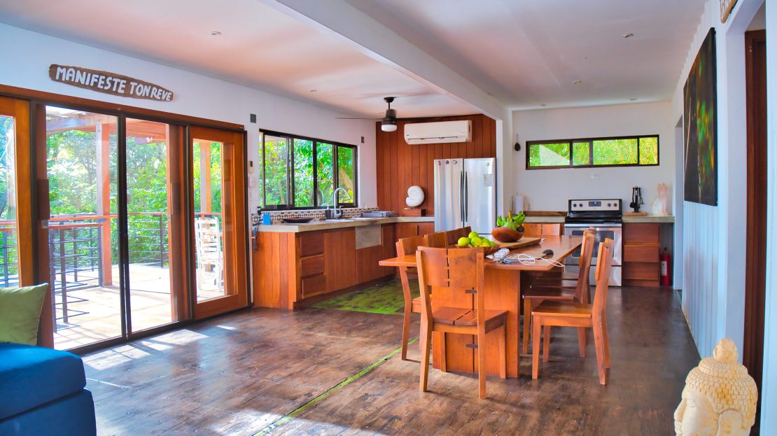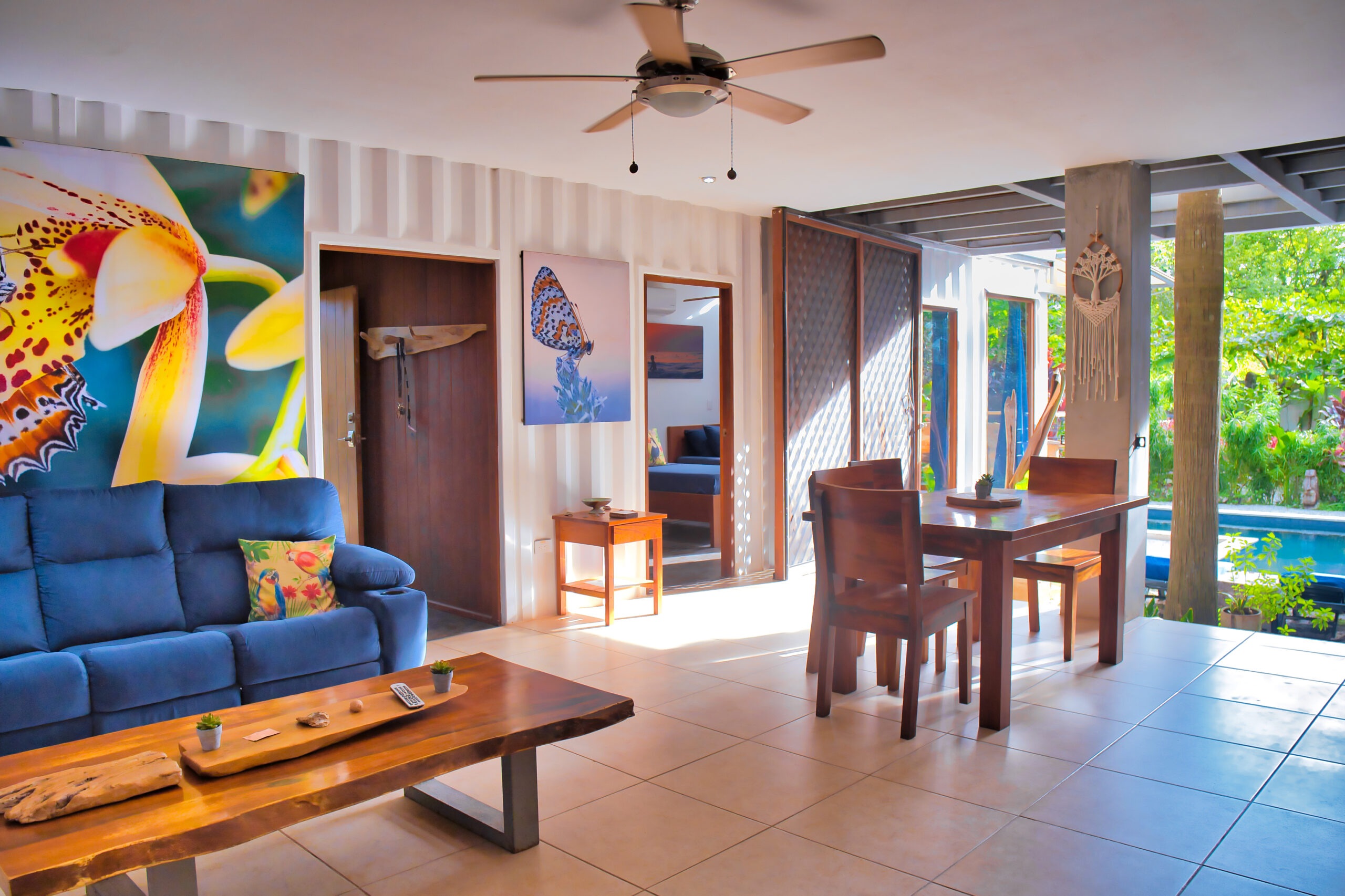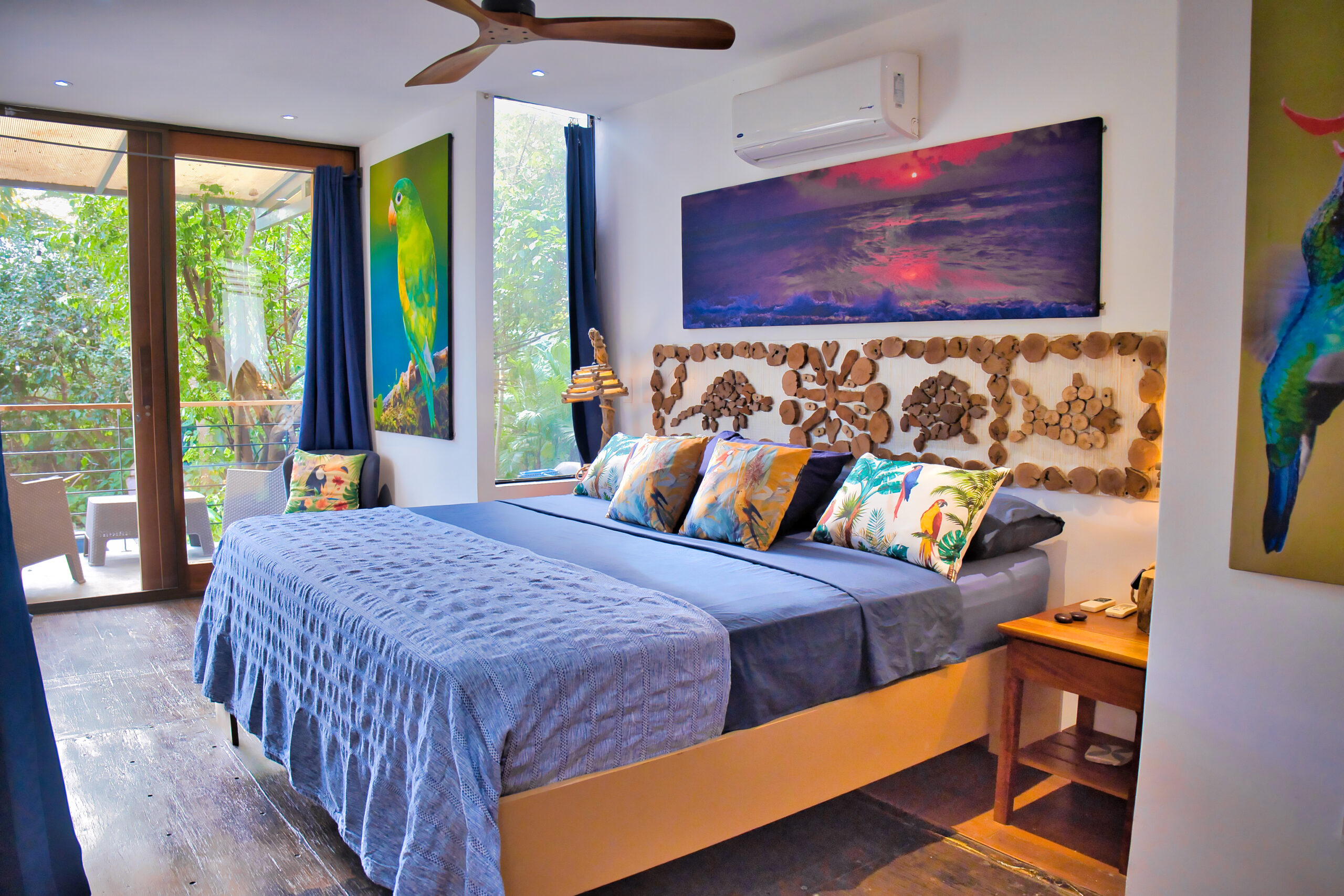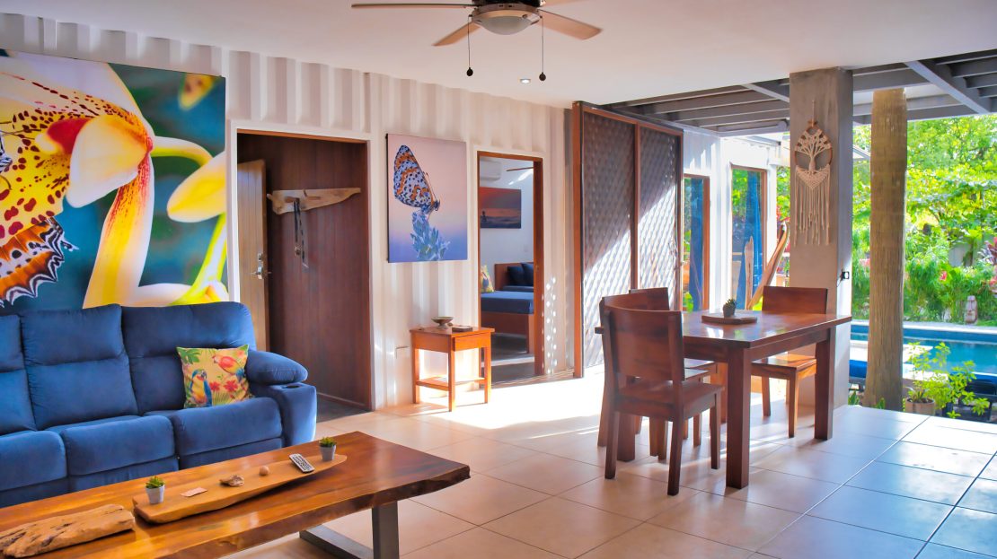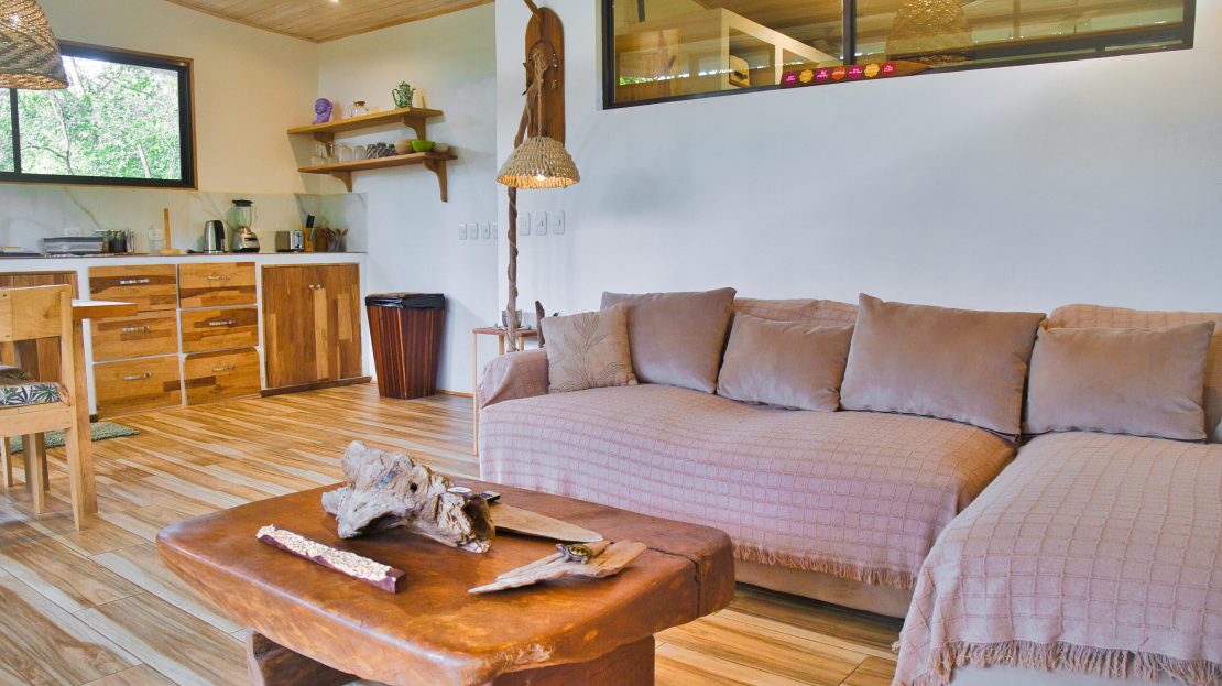 Tucked away within the same lush property is the charming Skawak Jungle House, a beautifully designed 85m² haven that immerses guests in the vibrant wildlife of Nosara. This one-bedroom, one-bathroom home features an open-concept living space with expansive bay windows overlooking the jungle, a bespoke wooden kitchen, and artisanal ceramic floors. Loved by guests for its stunning décor and peaceful location, Skawak offers a unique and intimate connection with nature.