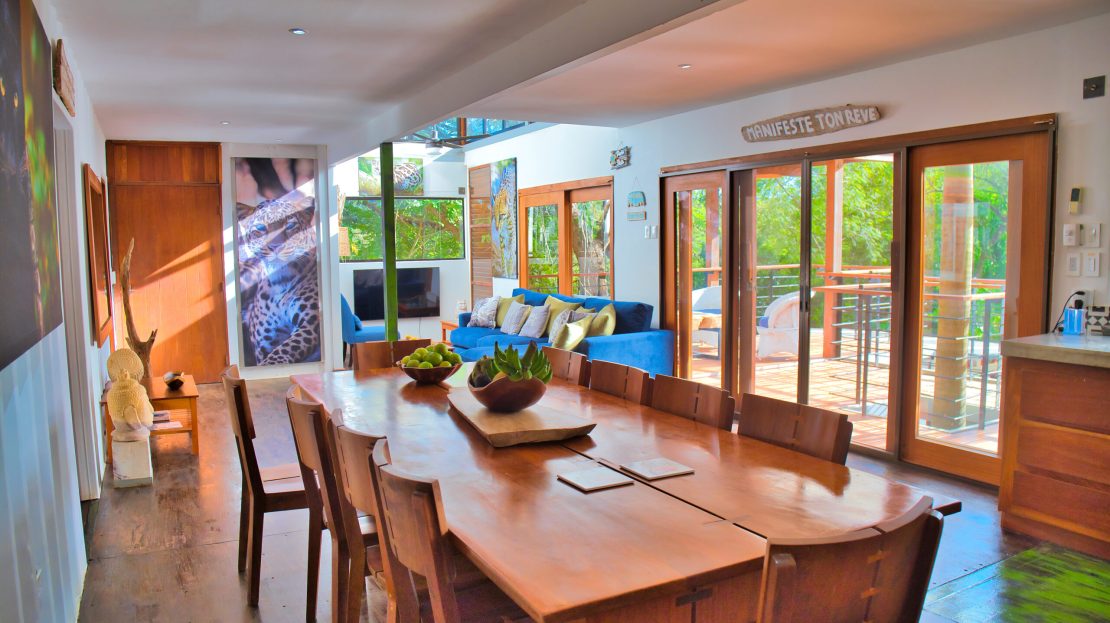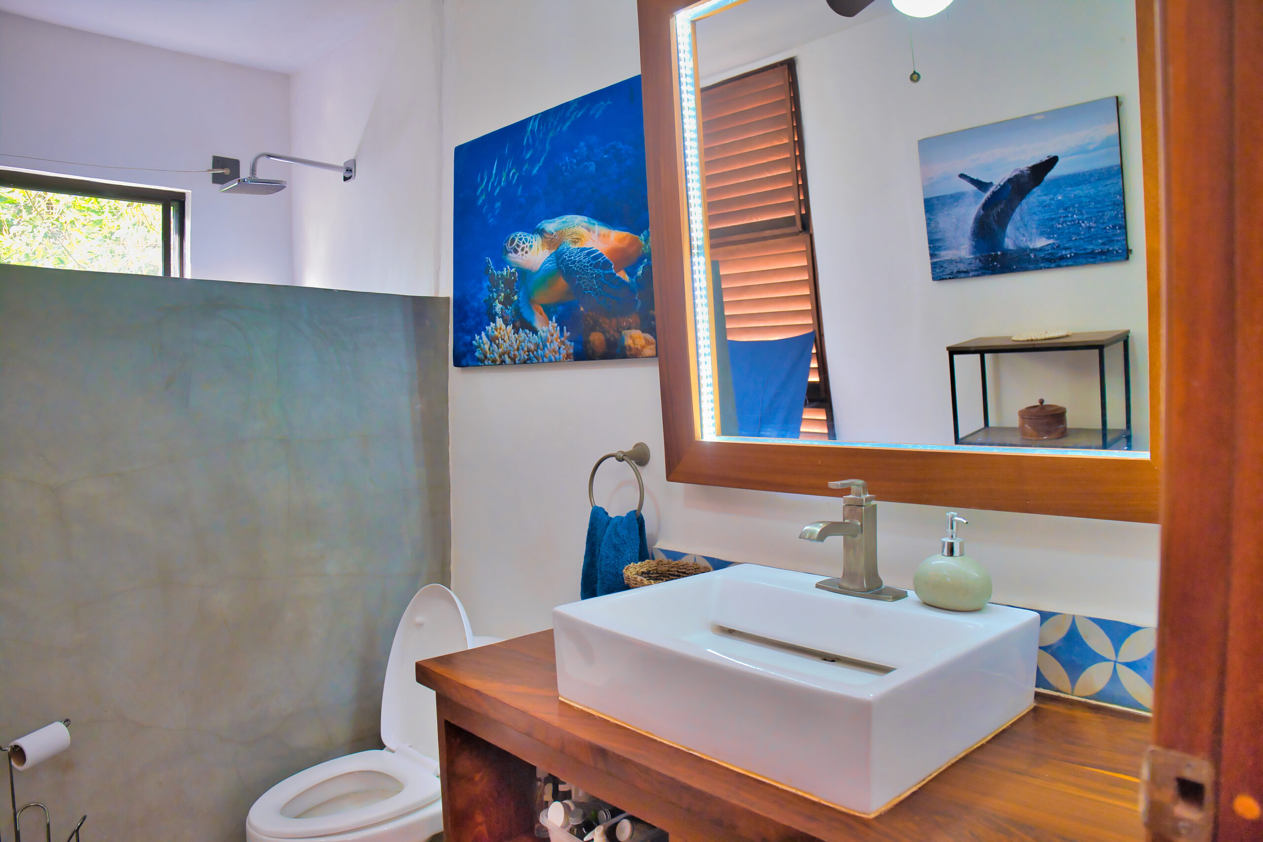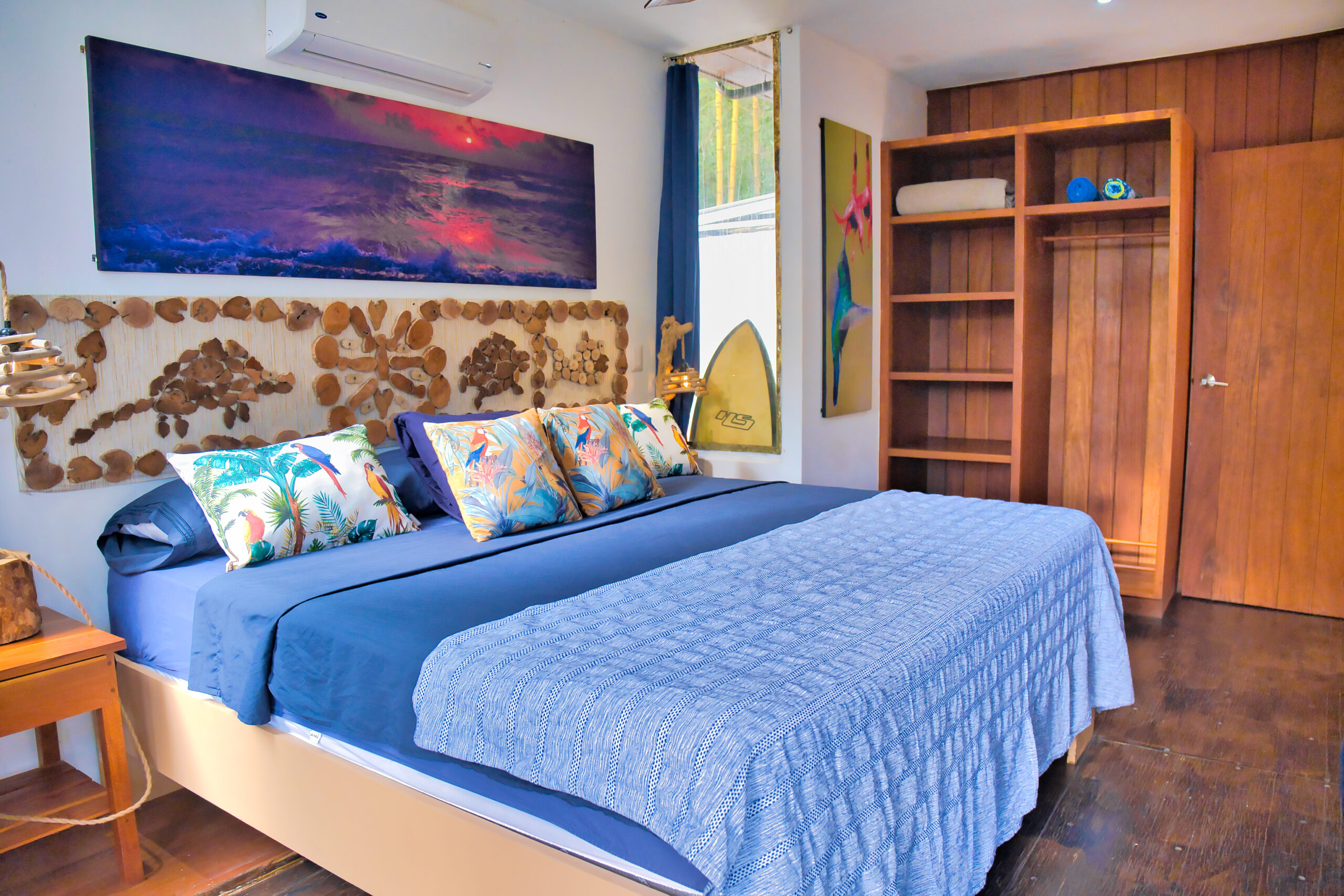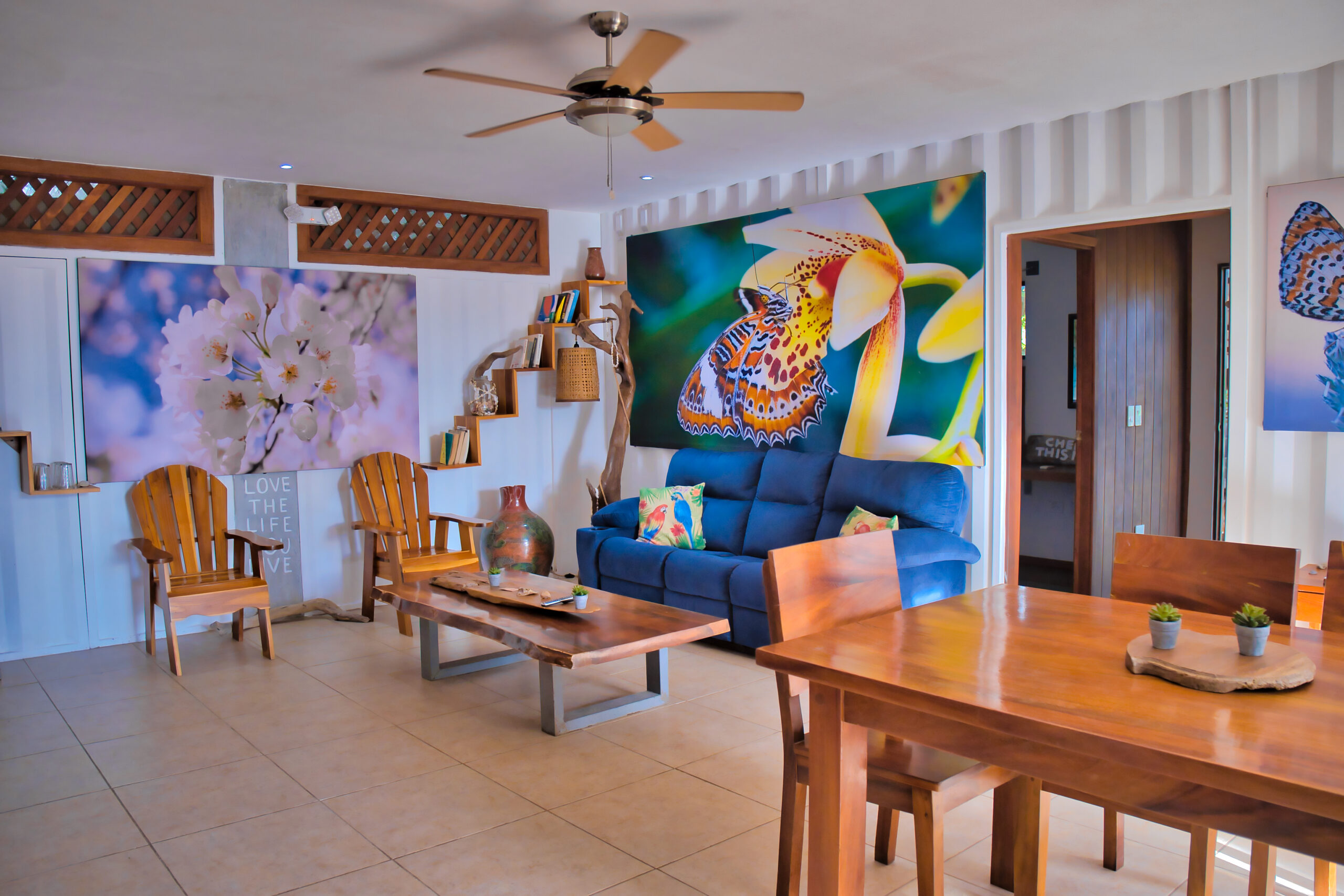 Tucked away within the same lush property is the charming Skawak Jungle House, a beautifully designed 85m² haven that immerses guests in the vibrant wildlife of Nosara. This one-bedroom, one-bathroom home features an open-concept living space with expansive bay windows overlooking the jungle, a bespoke wooden kitchen, and artisanal ceramic floors. Loved by guests for its stunning décor and peaceful location, Skawak offers a unique and intimate connection with nature.