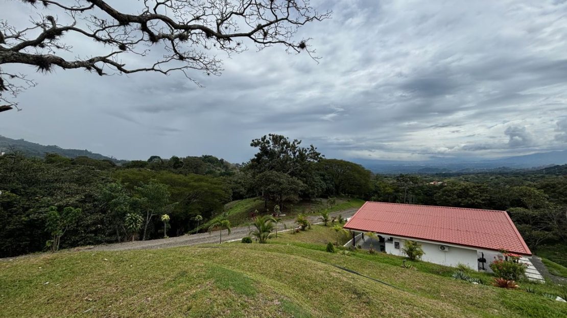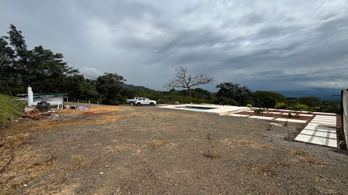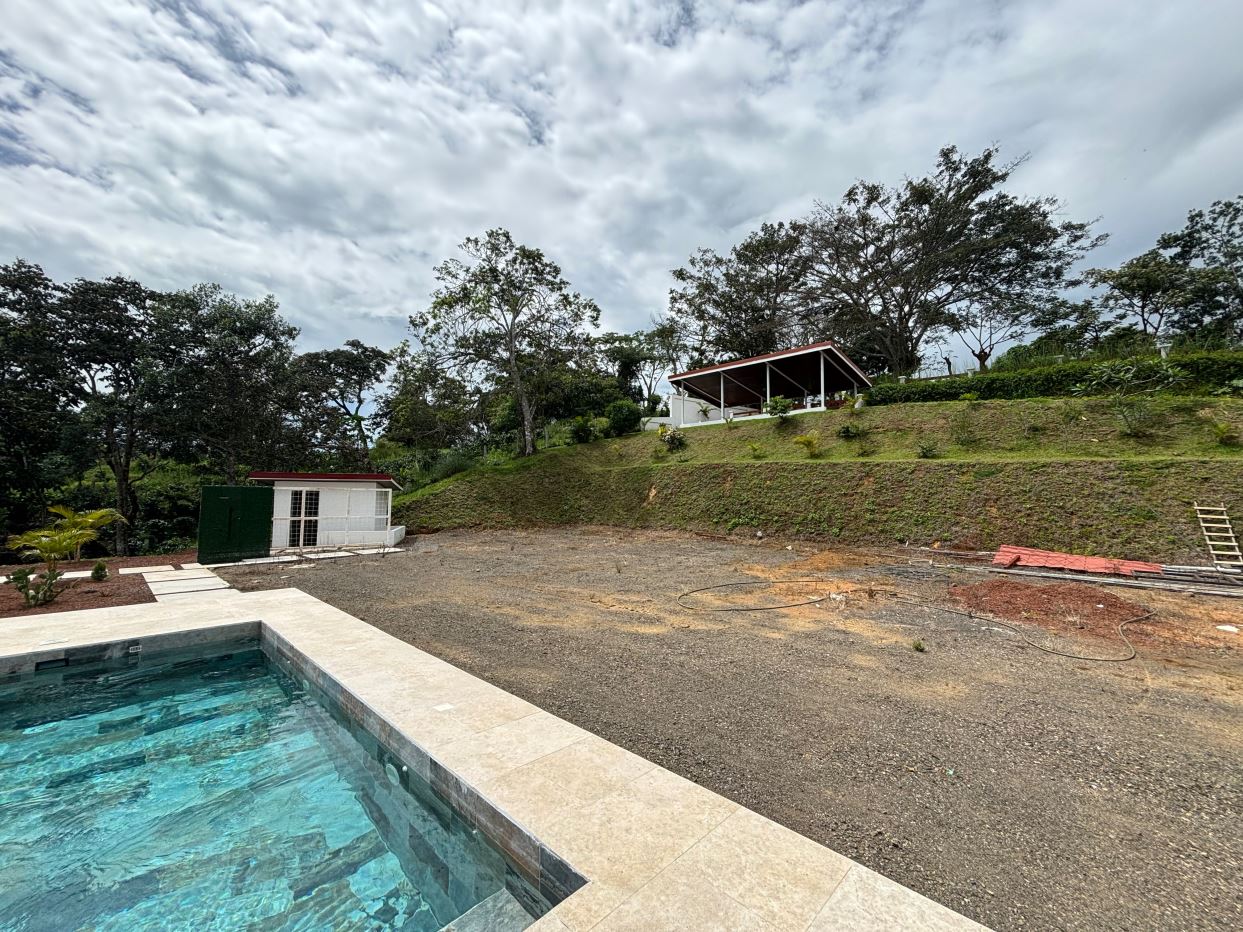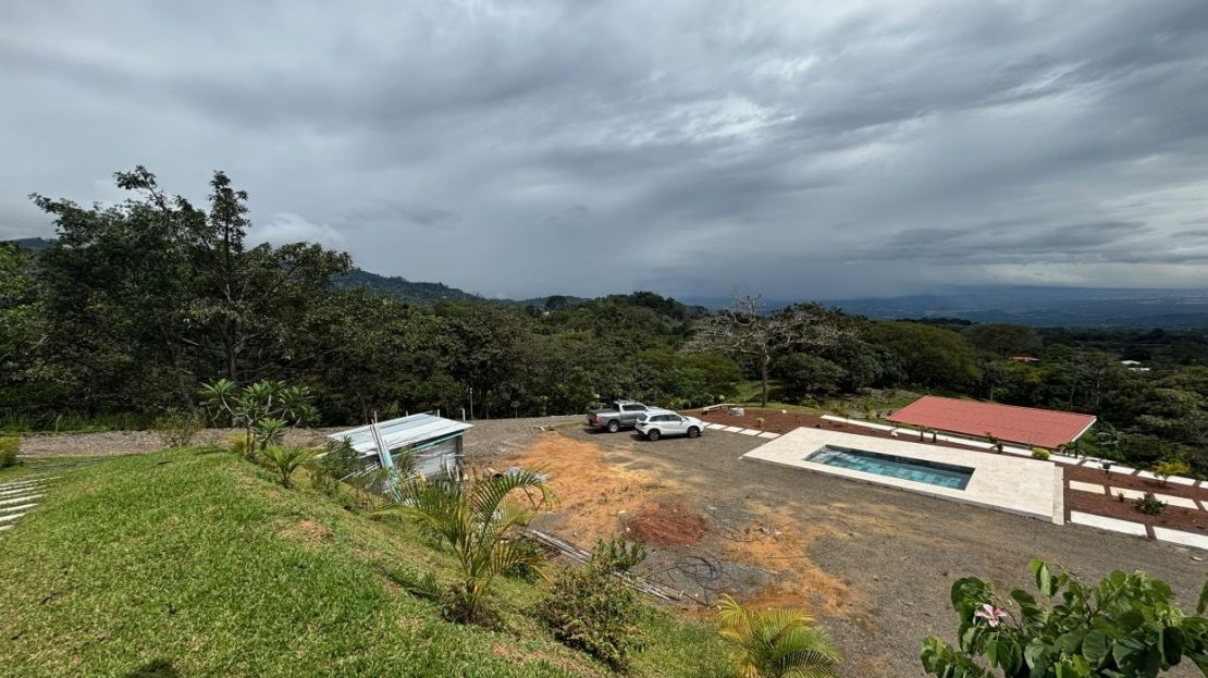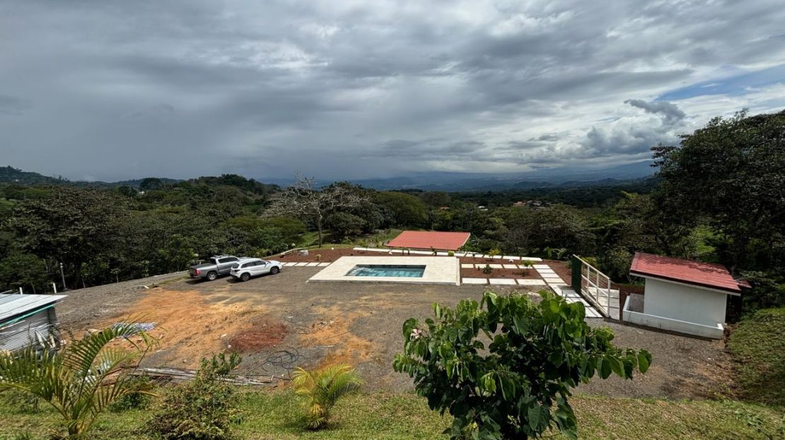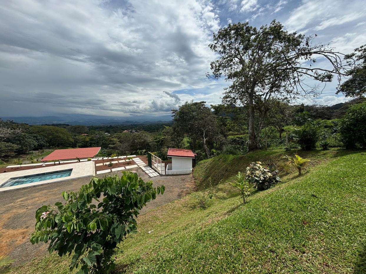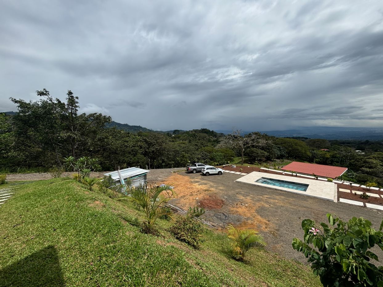 8315m2 (2 acre) property with guest home and big pool and views ideal for large build. Located in a private community with plenty of room for added projects to the property. The home is a nice modern studio with sleek finishes. Above the lot is a very large build area with 279 degree views with amazing panoramic scenary. Located no more than 10 minutes from town center in the cooler climates of Atenas. The a big swimming pool ideal for doing laps.