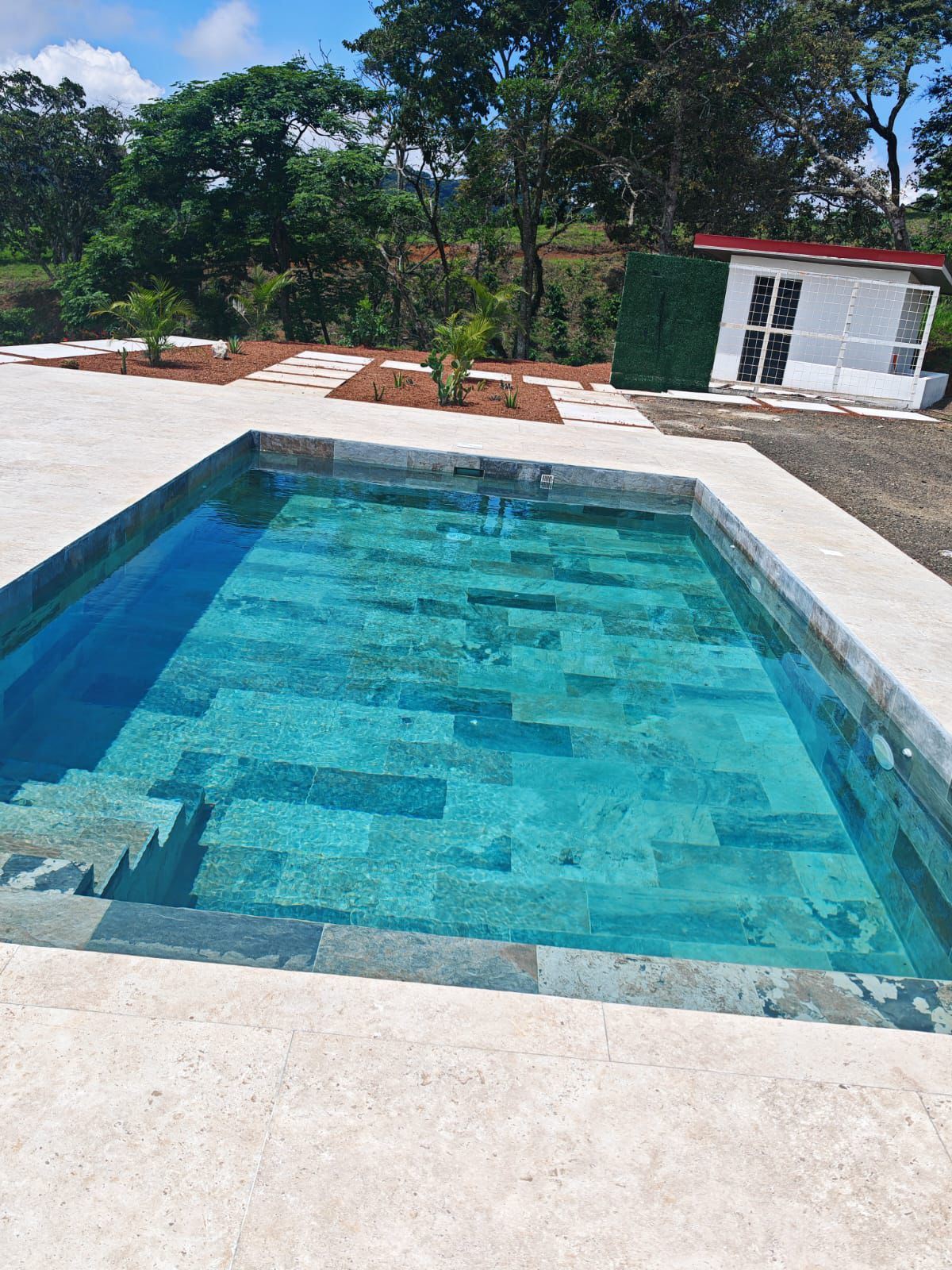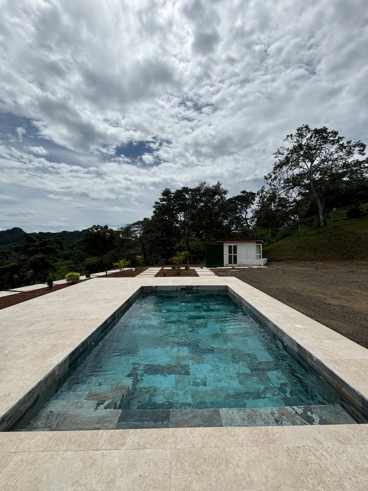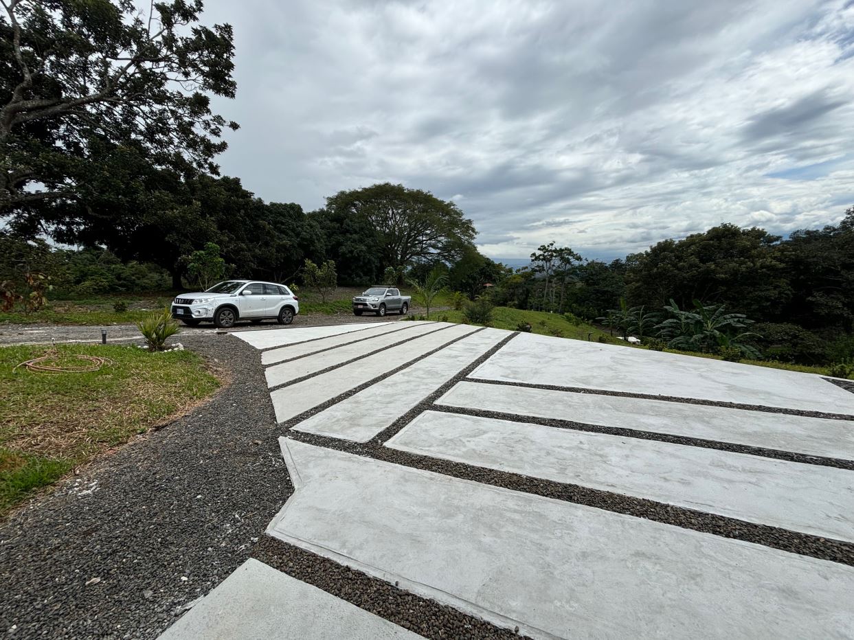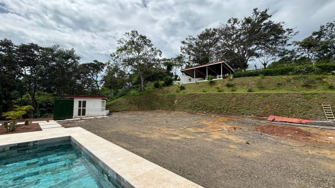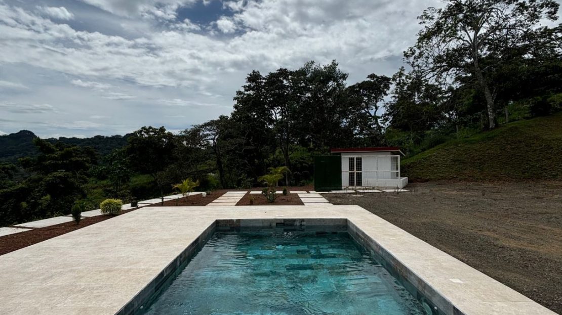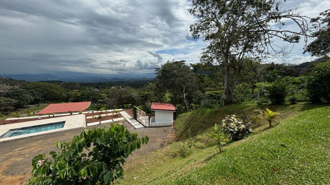 8315m2 (2 acre) property with guest home and big pool and views ideal for large build. Located in a private community with plenty of room for added projects to the property. The home is a nice modern studio with sleek finishes. Above the lot is a very large build area with 279 degree views with amazing panoramic scenary. Located no more than 10 minutes from town center in the cooler climates of Atenas. The a big swimming pool ideal for doing laps.