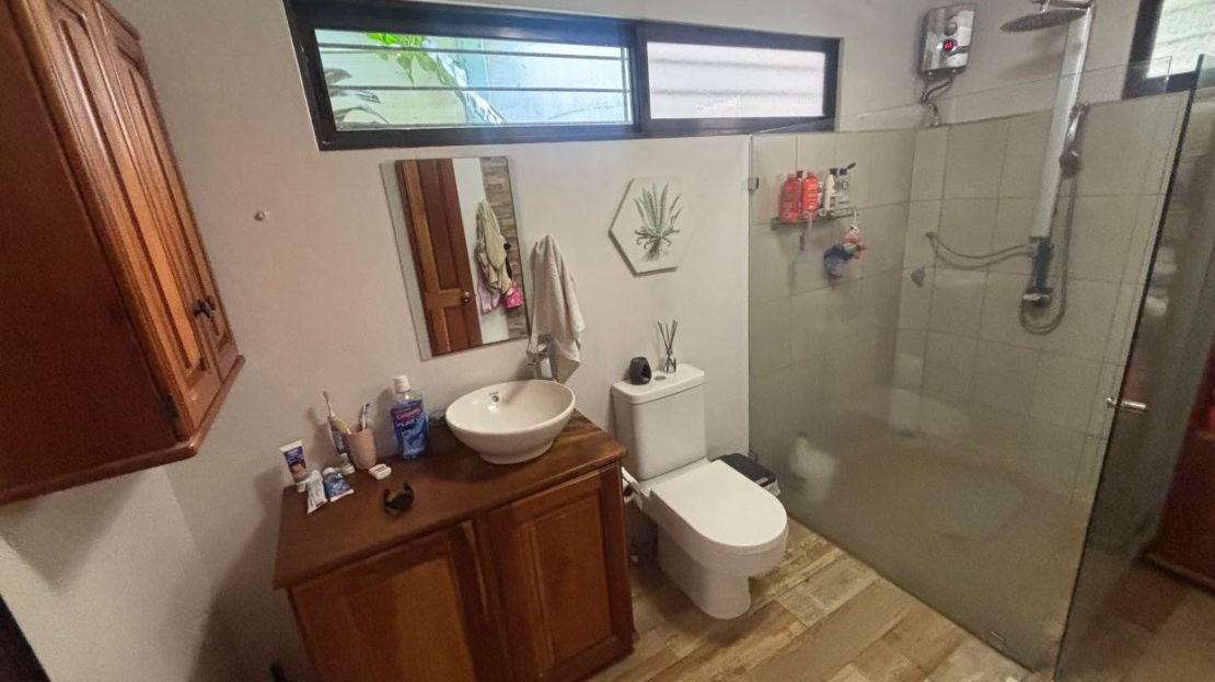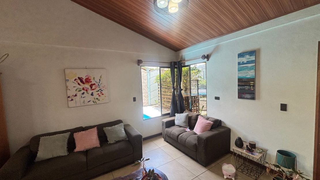 A cozy Atenas home with pool and rancho conveniently located close to everything. This nicely designed and finished ranch style home is located just 1 minute from the east-west 27 highway and 3 minutes from Atenas Center but lies on a quiet residencial street within a short walk of supermarkets and restaurants. The front of the home is entered by an automatic gate with a private and secure perimeter throughout. The long private entrance leads to a carport and formal entry into the common area living room, kitchen and to the three bedrooms and one bath. The kitchen leads way to a beautiful artesenal covered porch area adjacent to the long inviting pool and deck area. The nicely landscaped backyard has a nice size orchard with plenty of citrus plants and other fruit trees. There is an added annex room ideal for a separate apartment with bathroom or home office. Farther in the back of the home is a covered bbq location. There is an added storage area.