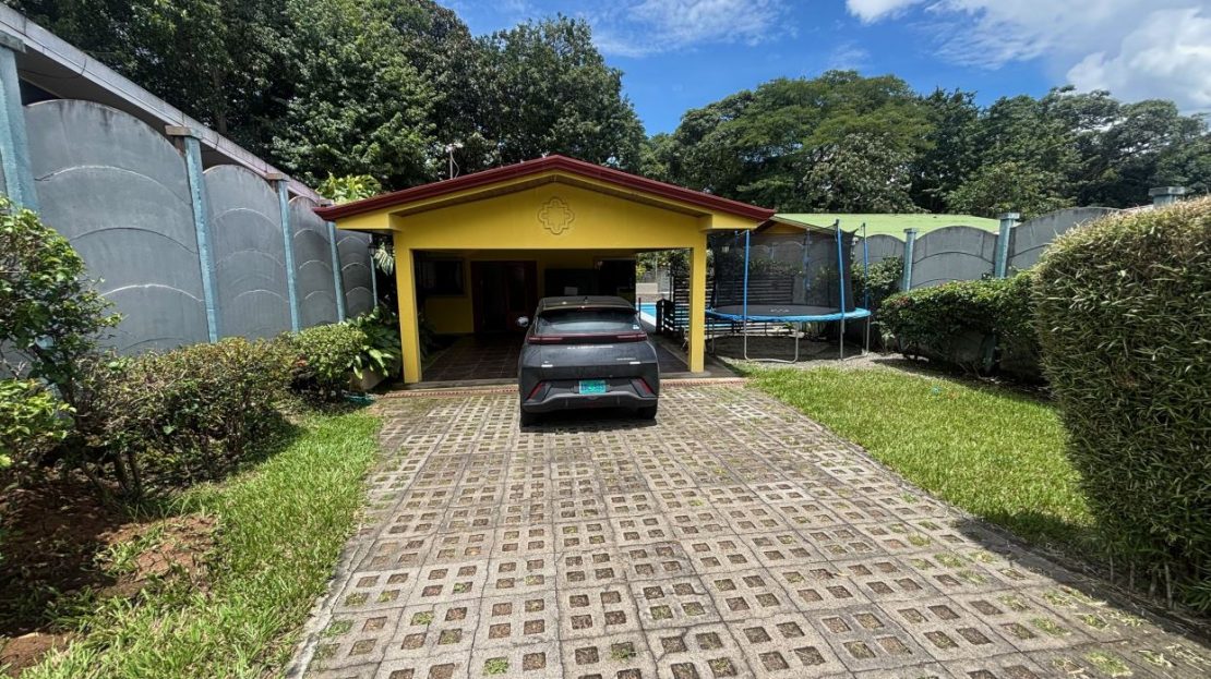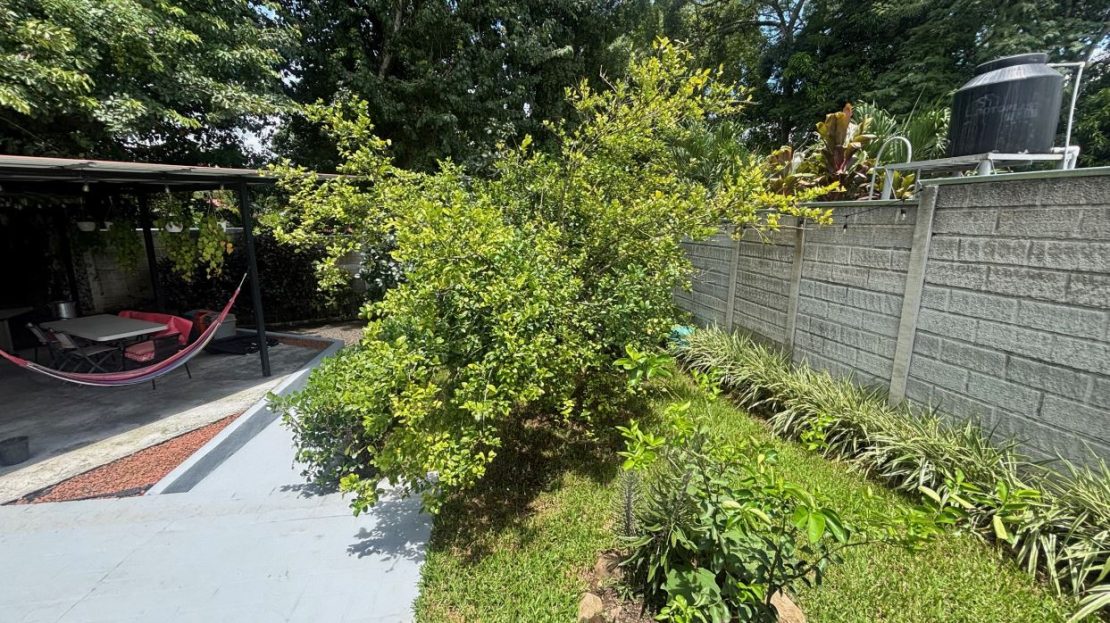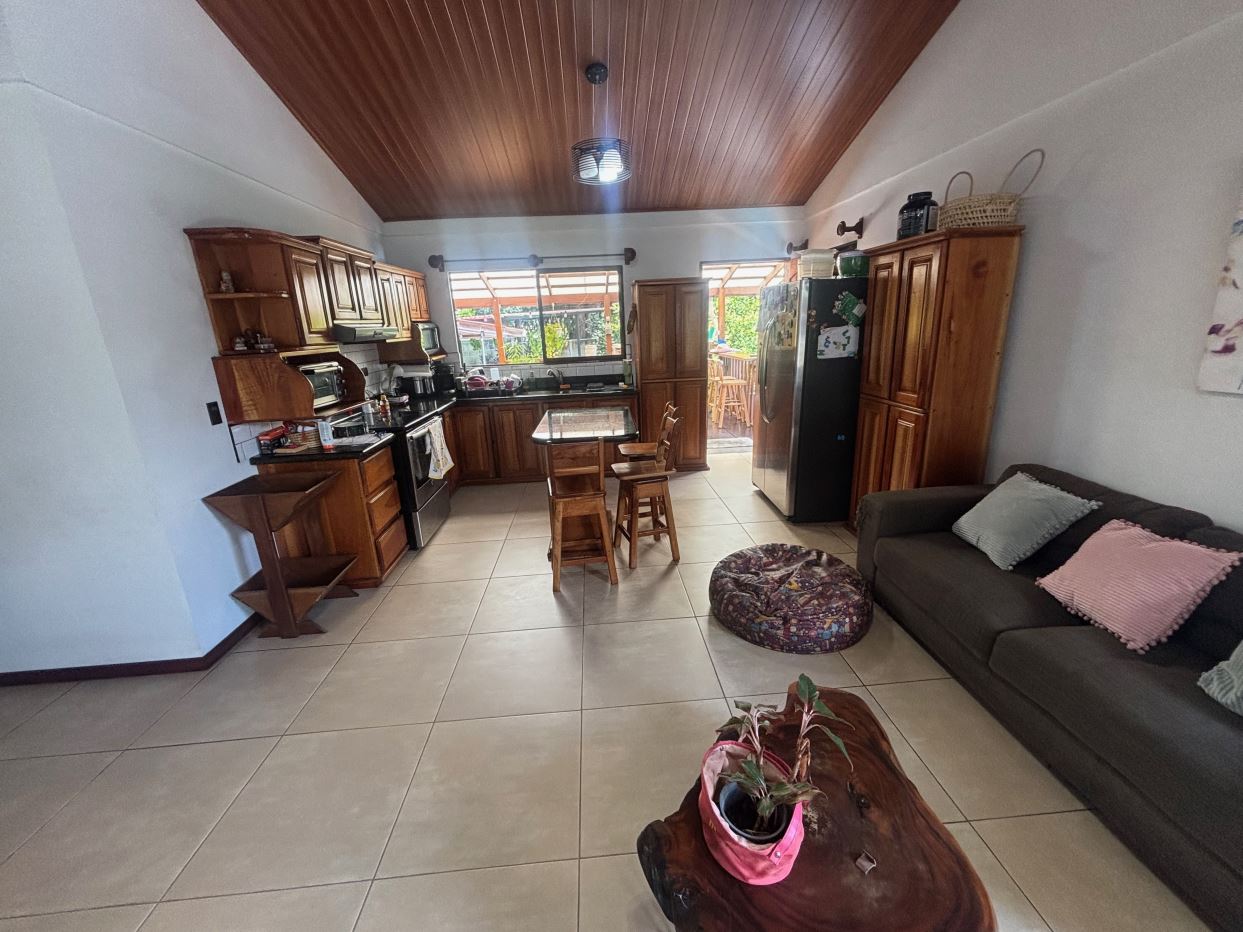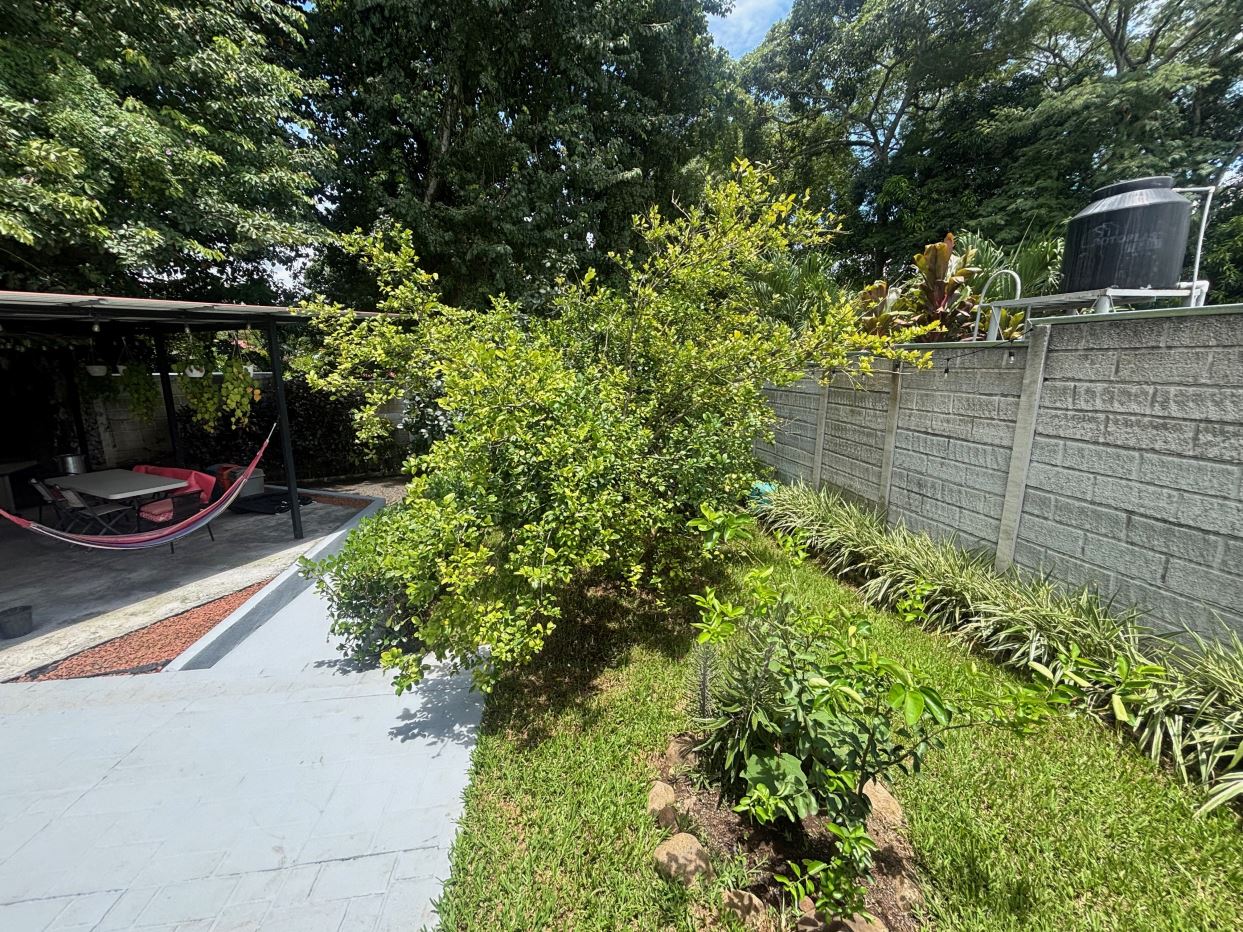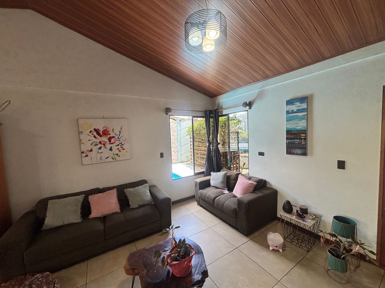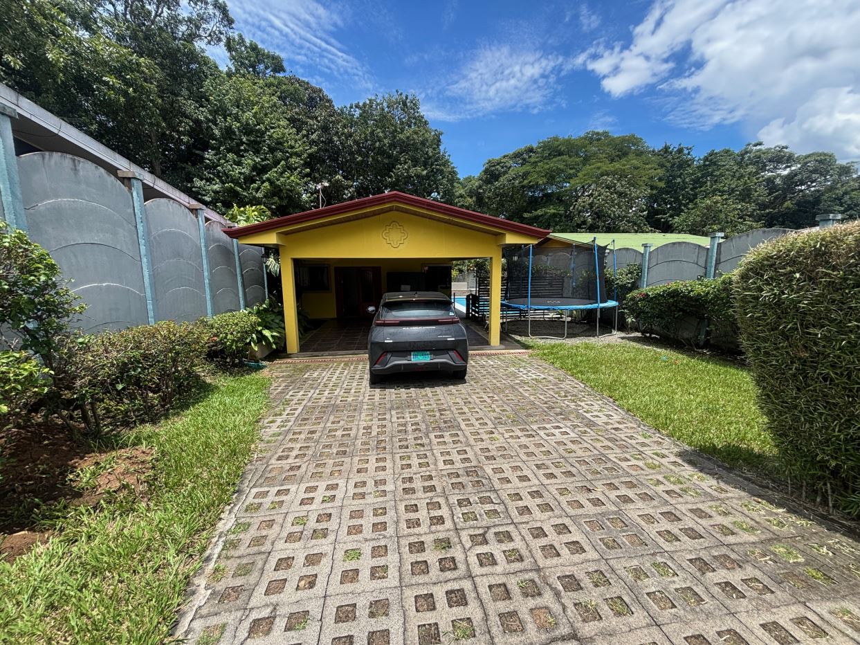 A cozy Atenas home with pool and rancho conveniently located close to everything. This nicely designed and finished ranch style home is located just 1 minute from the east-west 27 highway and 3 minutes from Atenas Center but lies on a quiet residencial street within a short walk of supermarkets and restaurants. The front of the home is entered by an automatic gate with a private and secure perimeter throughout. The long private entrance leads to a carport and formal entry into the common area living room, kitchen and to the three bedrooms and one bath. The kitchen leads way to a beautiful artesenal covered porch area adjacent to the long inviting pool and deck area. The nicely landscaped backyard has a nice size orchard with plenty of citrus plants and other fruit trees. There is an added annex room ideal for a separate apartment with bathroom or home office. Farther in the back of the home is a covered bbq location. There is an added storage area.