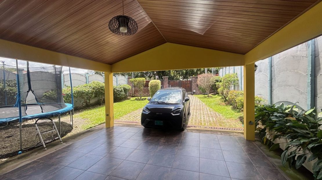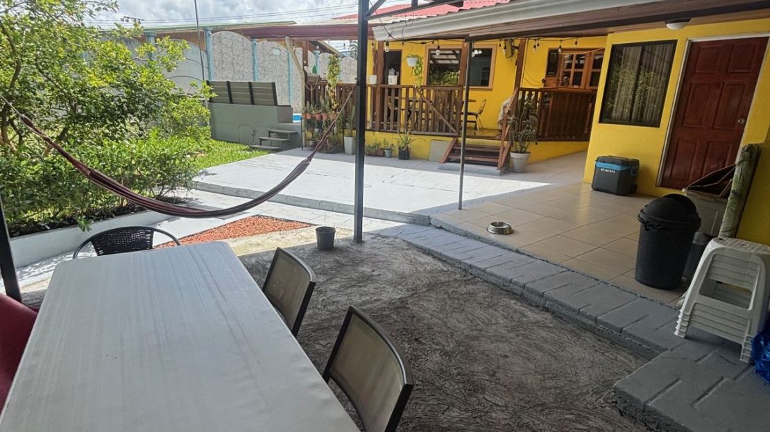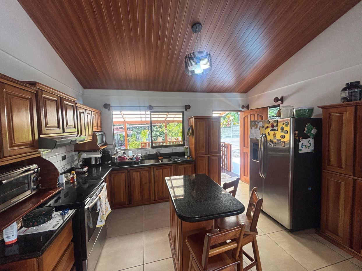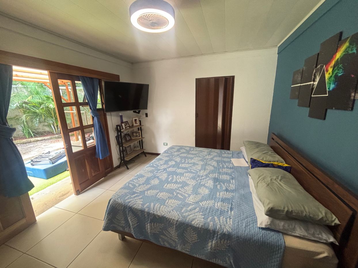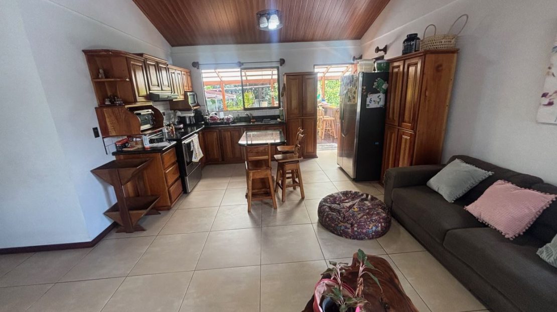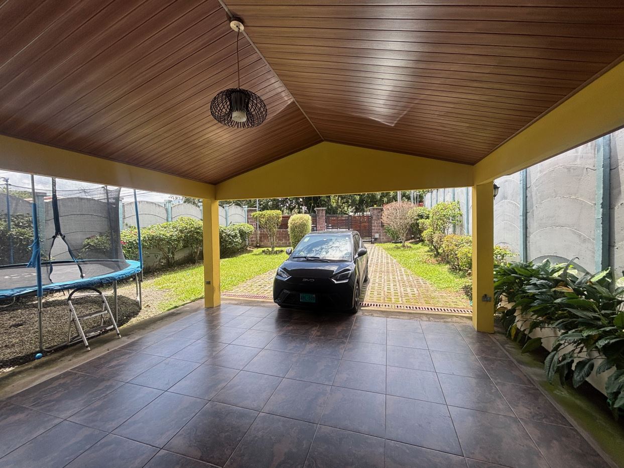A cozy Atenas home with pool and rancho conveniently located close to everything. This nicely designed and finished ranch style home is located just 1 minute from the east-west 27 highway and 3 minutes from Atenas Center but lies on a quiet residencial street within a short walk of supermarkets and restaurants. The front of the home is entered by an automatic gate with a private and secure perimeter throughout. The long private entrance leads to a carport and formal entry into the common area living room, kitchen and to the three bedrooms and one bath. The kitchen leads way to a beautiful artesenal covered porch area adjacent to the long inviting pool and deck area. The nicely landscaped backyard has a nice size orchard with plenty of citrus plants and other fruit trees. There is an added annex room ideal for a separate apartment with bathroom or home office. Farther in the back of the home is a covered bbq location. There is an added storage area.