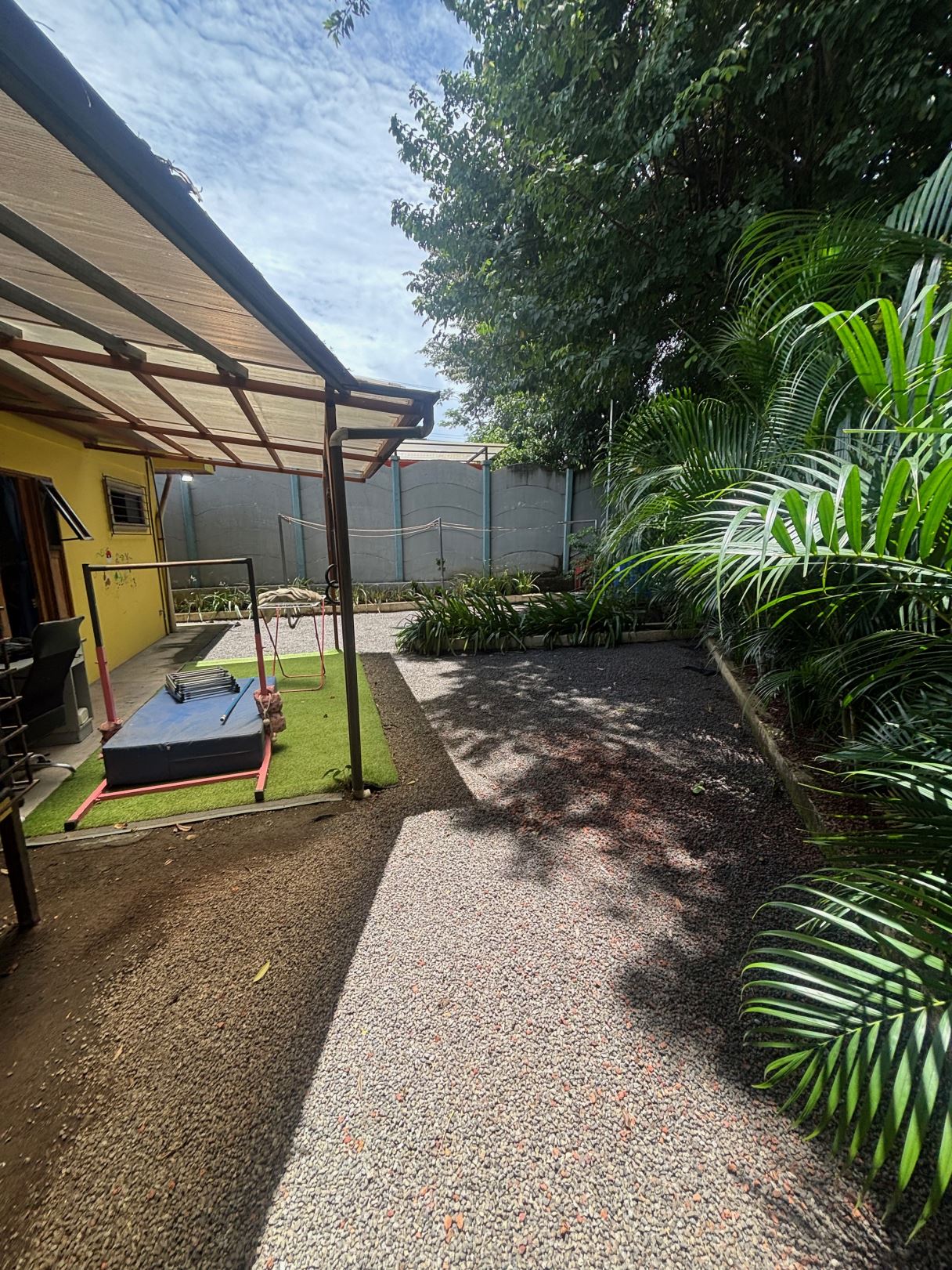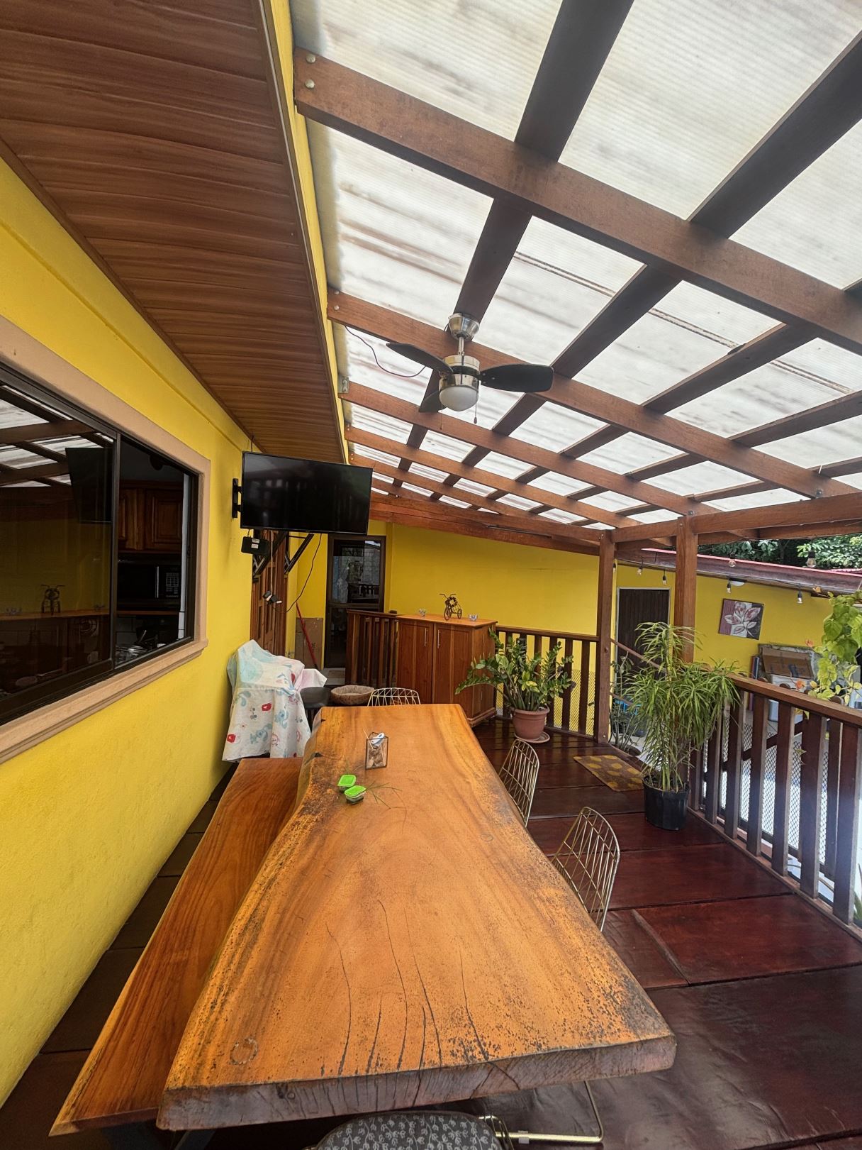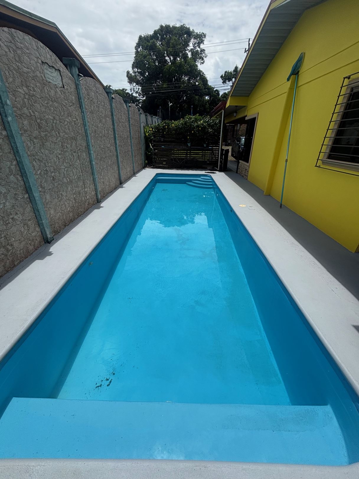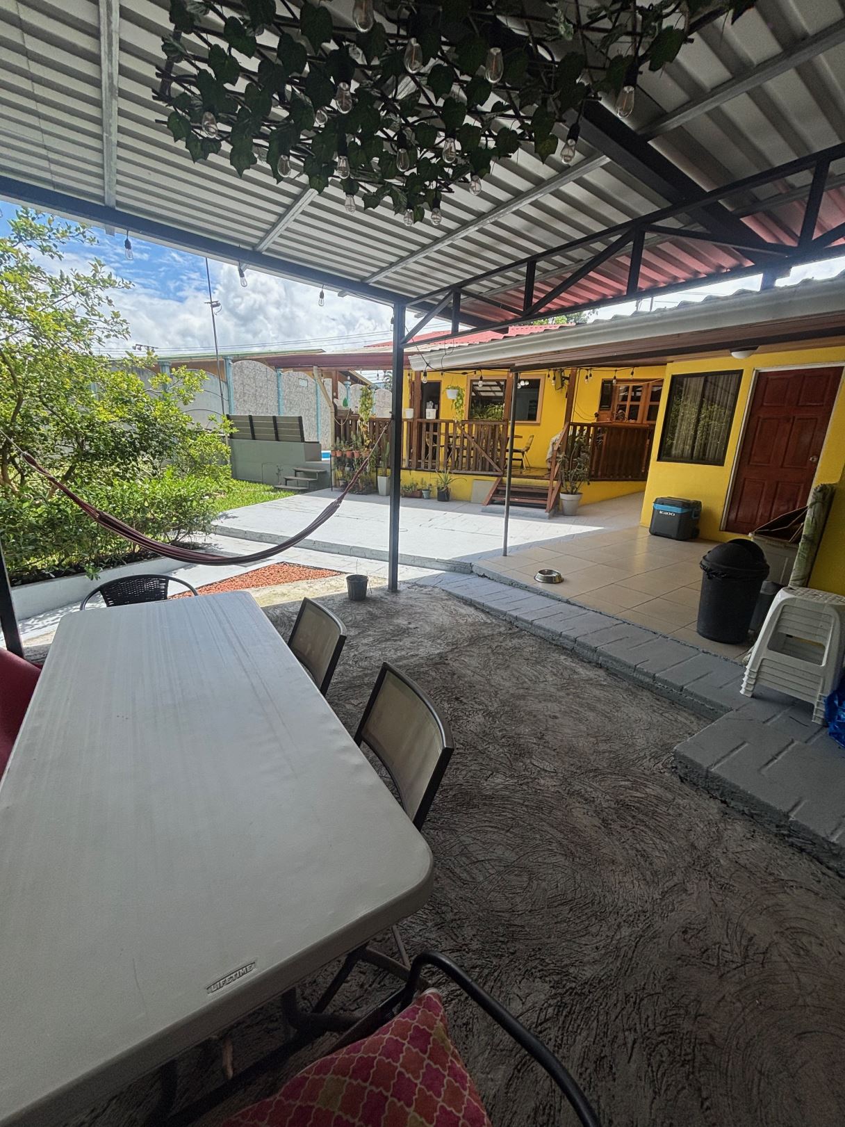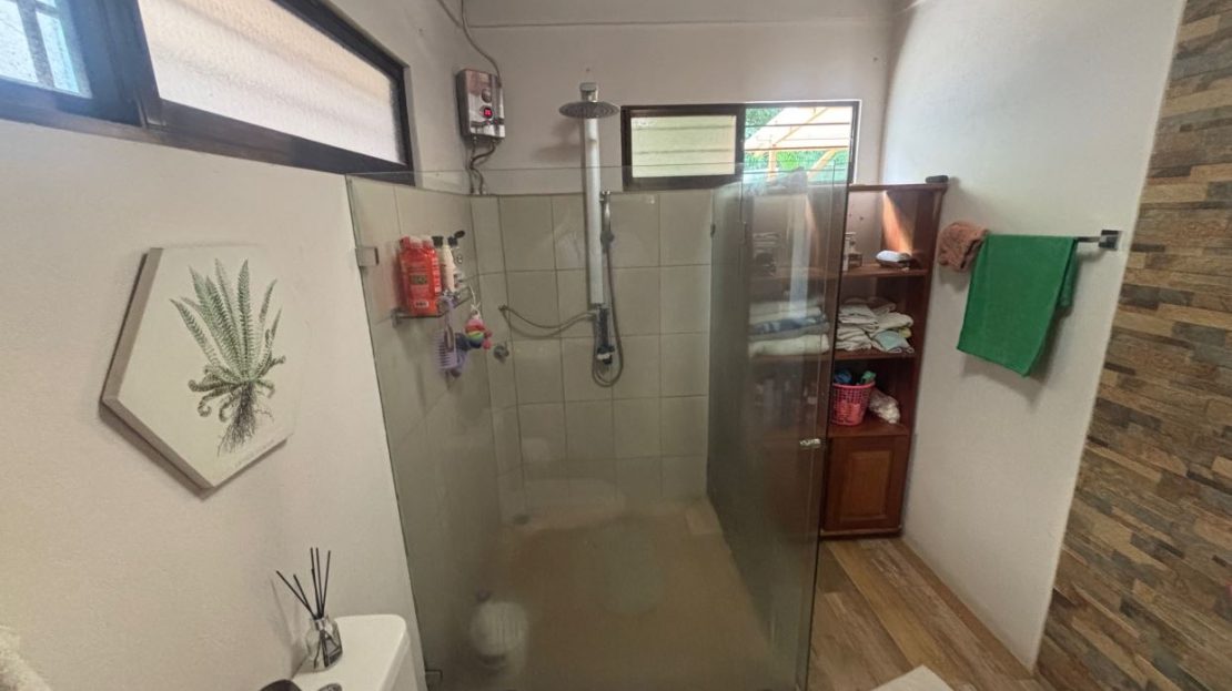 A cozy Atenas home with pool and rancho conveniently located close to everything. This nicely designed and finished ranch style home is located just 1 minute from the east-west 27 highway and 3 minutes from Atenas Center but lies on a quiet residencial street within a short walk of supermarkets and restaurants. The front of the home is entered by an automatic gate with a private and secure perimeter throughout. The long private entrance leads to a carport and formal entry into the common area living room, kitchen and to the three bedrooms and one bath. The kitchen leads way to a beautiful artesenal covered porch area adjacent to the long inviting pool and deck area. The nicely landscaped backyard has a nice size orchard with plenty of citrus plants and other fruit trees. There is an added annex room ideal for a separate apartment with bathroom or home office. Farther in the back of the home is a covered bbq location. There is an added storage area.