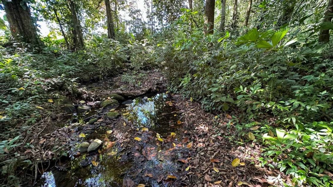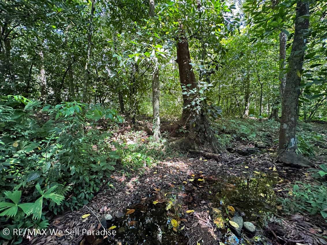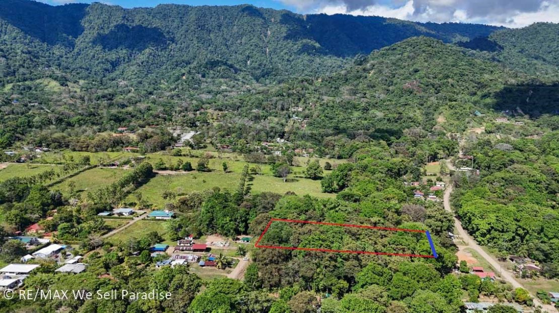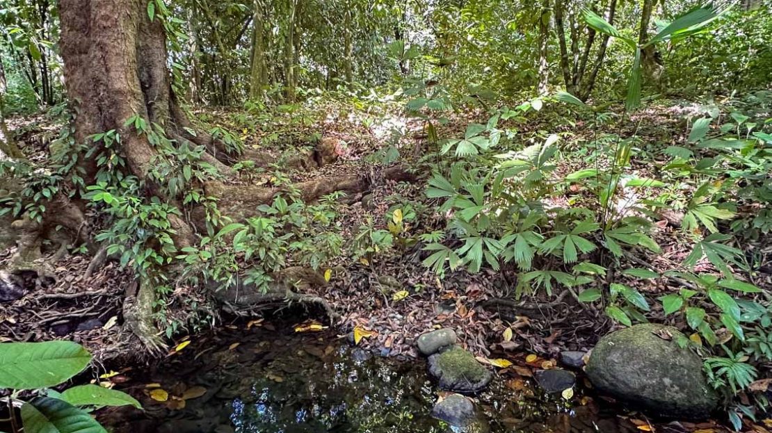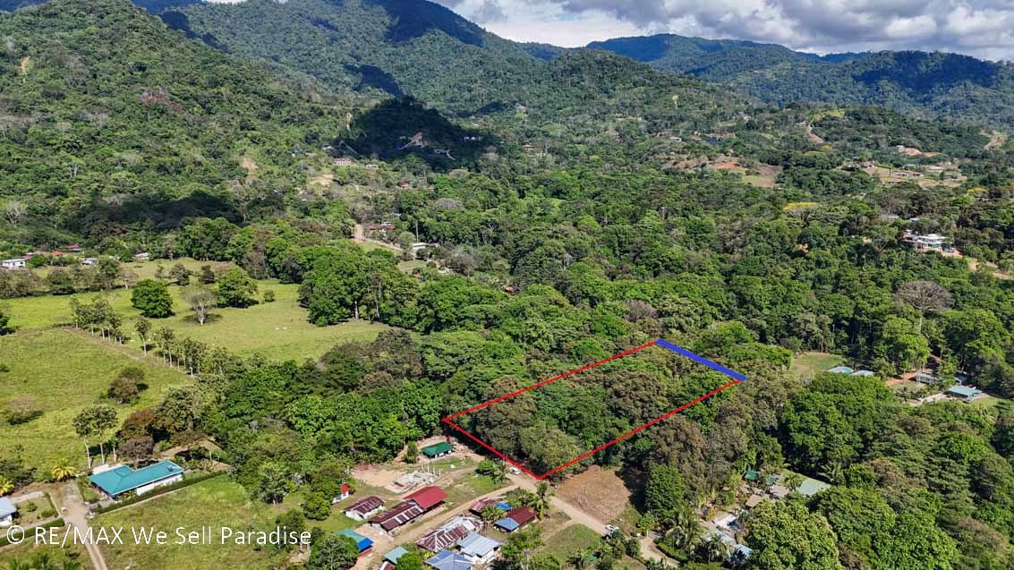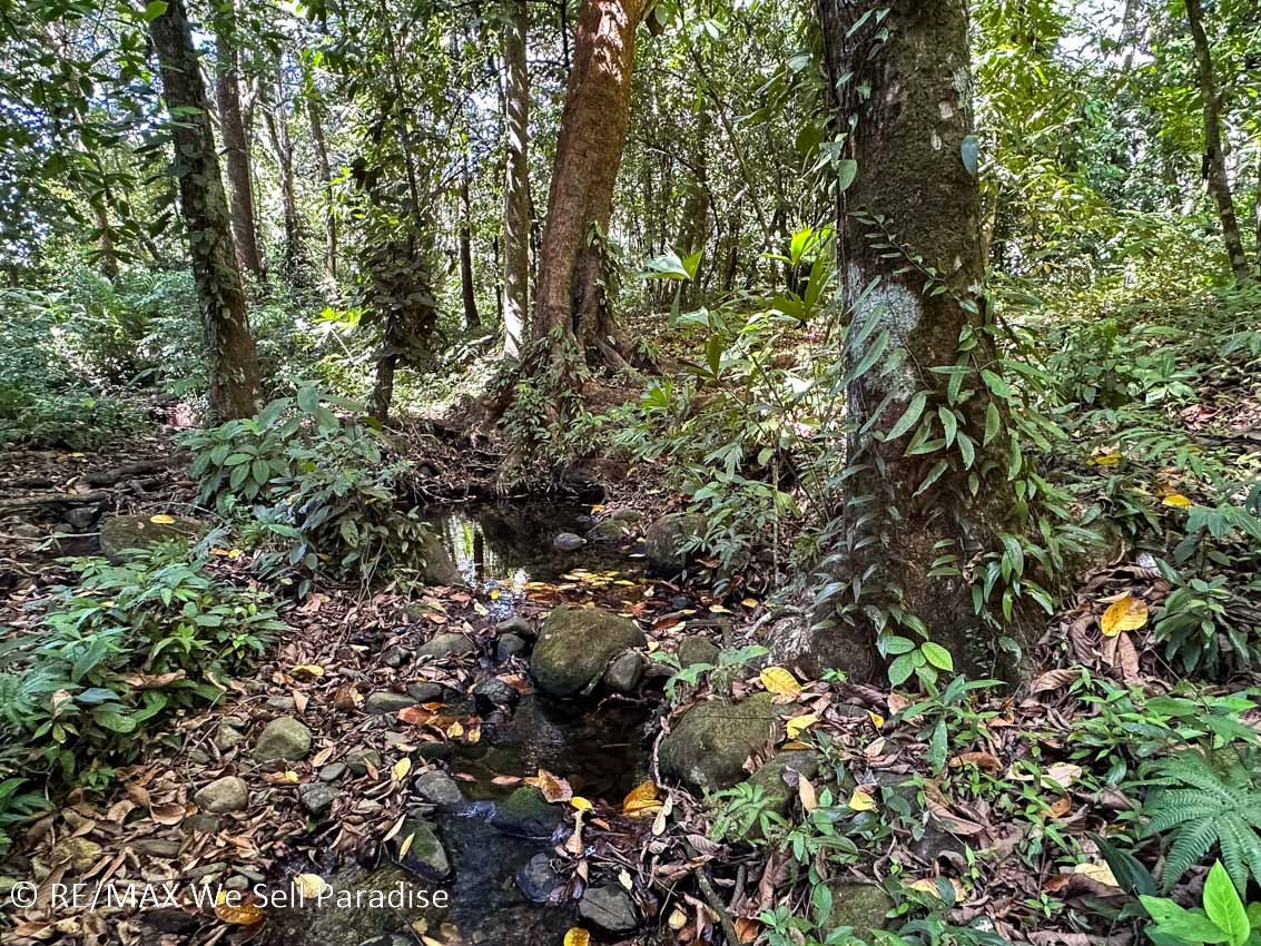 This large 1.3 acre lot – an oasis of greenery, peace and tranquillity – sits right inside the most sought-after real estate location of Costa Ballena: the amazing jungle town of OJOCHAL. On one end the land borders a mountain river flanked by towering rainforest trees. This year-round river is clean, cool and offers many swimming holes which could make for perfect hot afternoon dips – and a few dozen strategically placed rocks would create a deep and cool swim hole big and deep enough for a large group to relax in! Inside the property a smaller year-round creek flanks the large centrally located plantel – a perfect spot for a house, as it would take full advantage of the rainforest surroundings and allow for the sound of the nearby river to accompany the jungle bird and animal ambience.