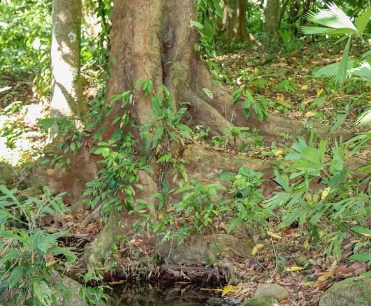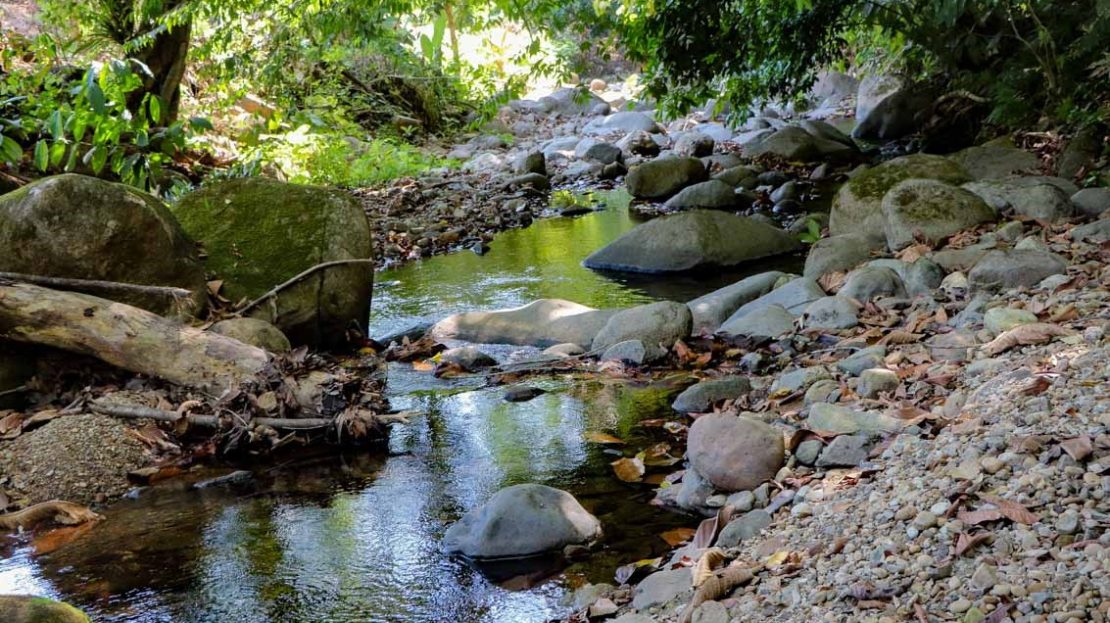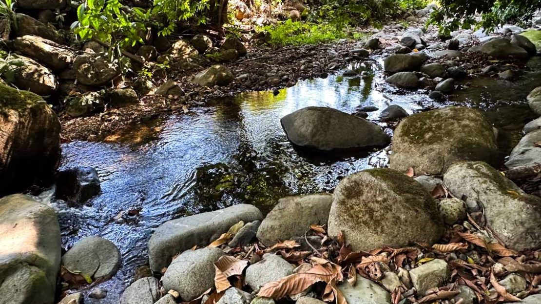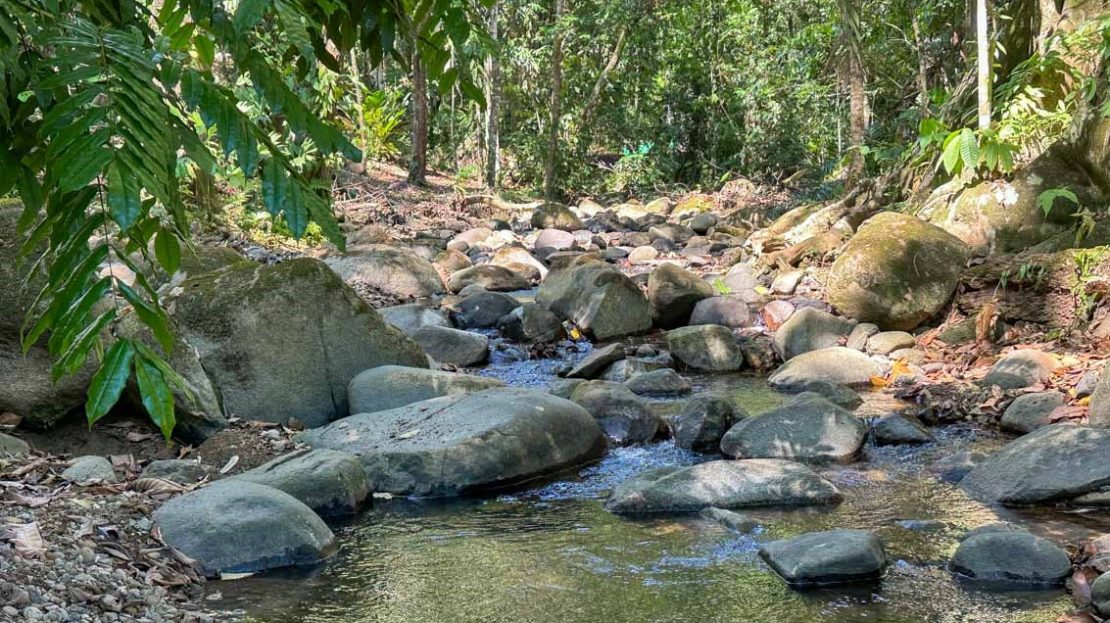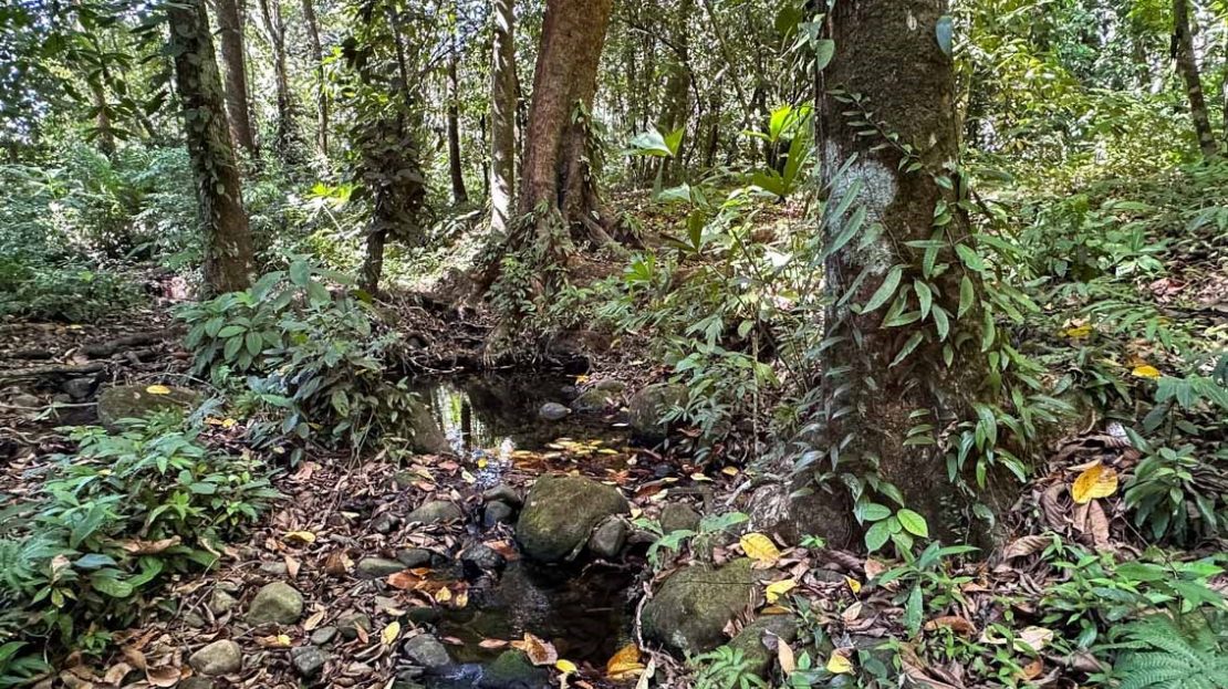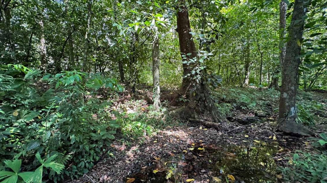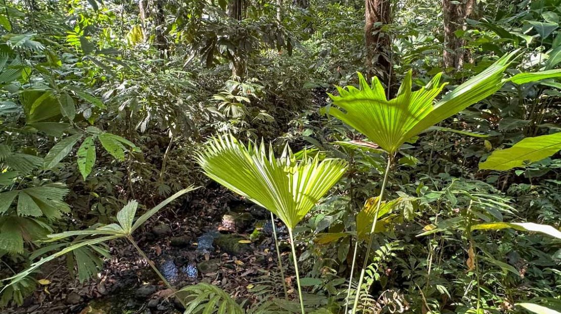 This large 1.3 acre lot – an oasis of greenery, peace and tranquillity – sits right inside the most sought-after real estate location of Costa Ballena: the amazing jungle town of OJOCHAL. On one end the land borders a mountain river flanked by towering rainforest trees. This year-round river is clean, cool and offers many swimming holes which could make for perfect hot afternoon dips – and a few dozen strategically placed rocks would create a deep and cool swim hole big and deep enough for a large group to relax in! Inside the property a smaller year-round creek flanks the large centrally located plantel – a perfect spot for a house, as it would take full advantage of the rainforest surroundings and allow for the sound of the nearby river to accompany the jungle bird and animal ambience.