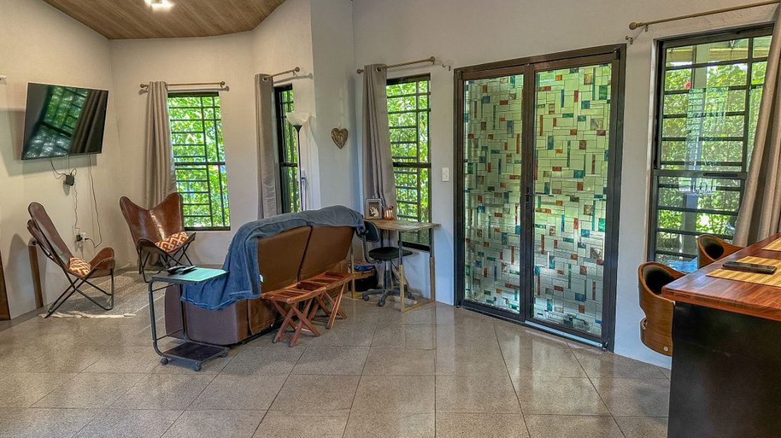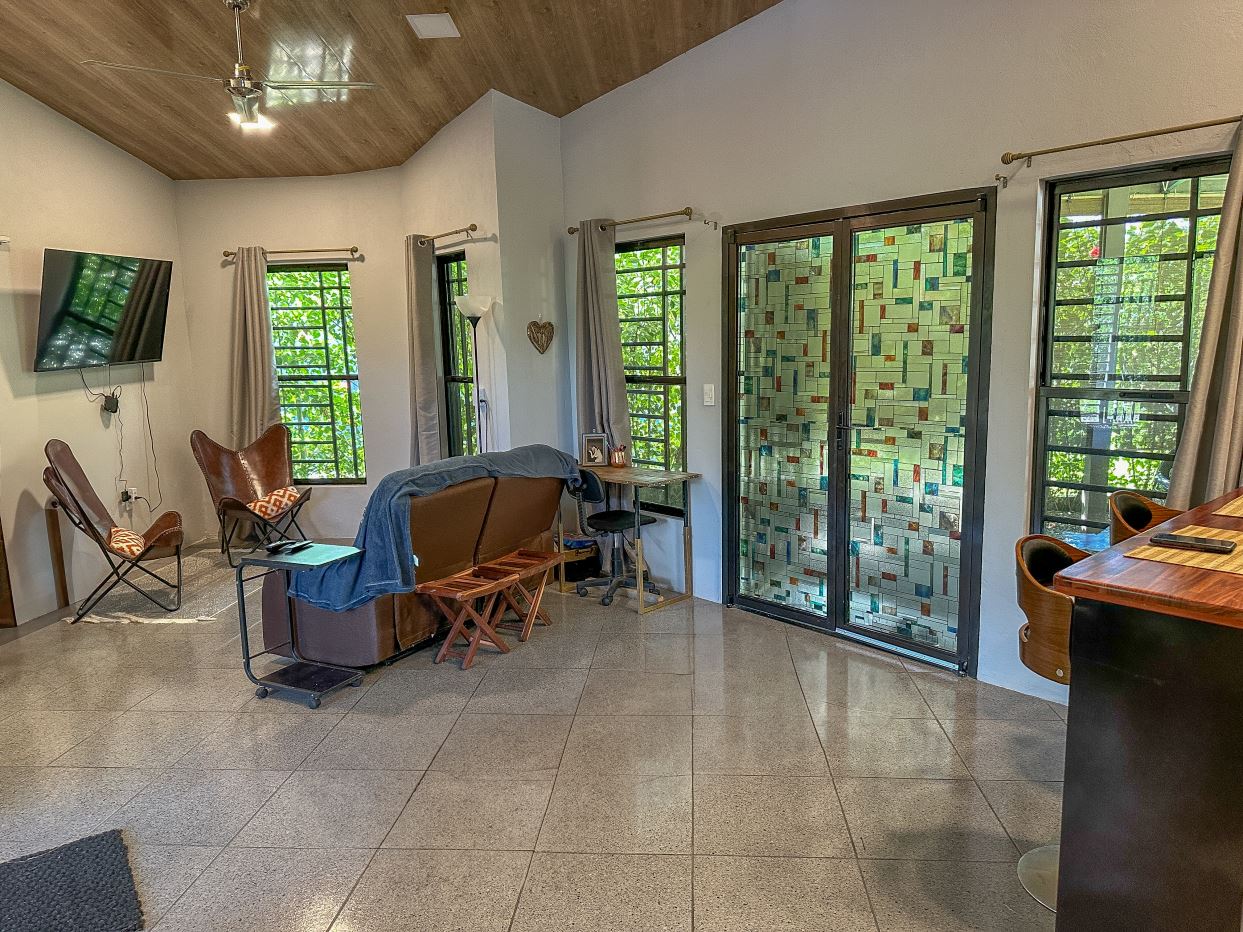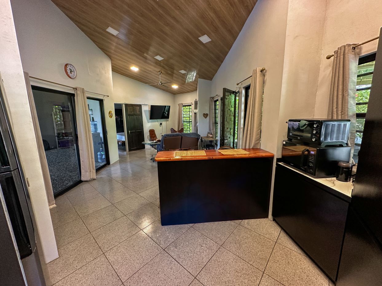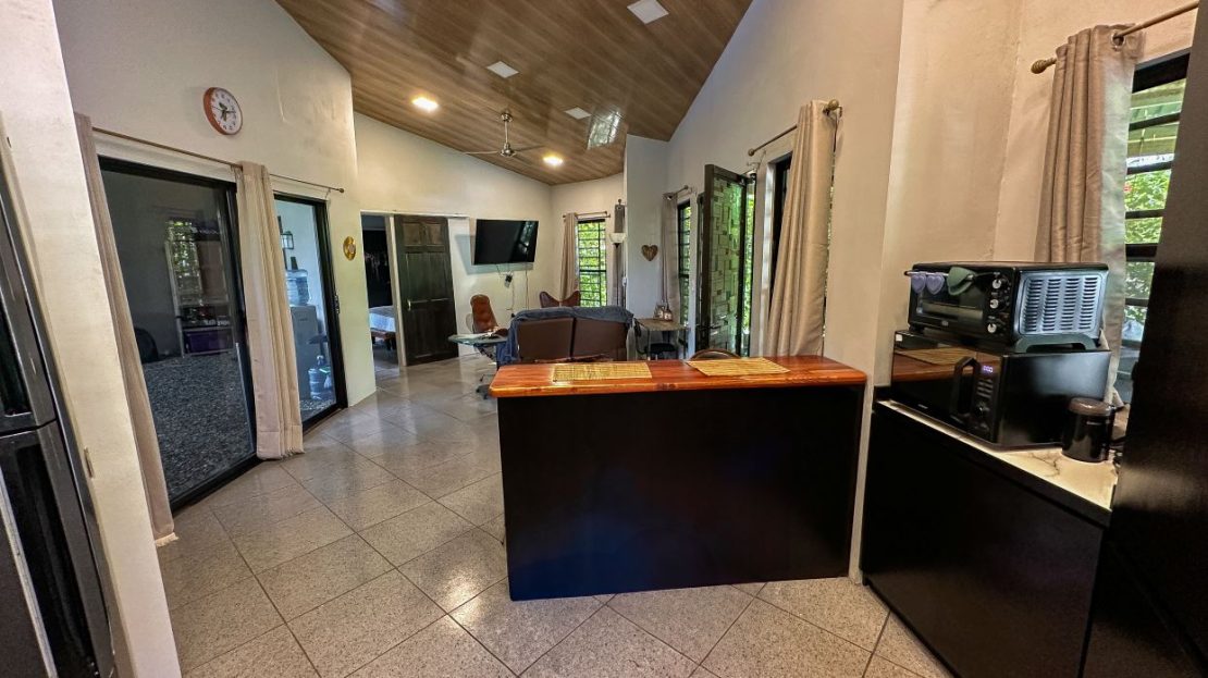 Have you ever dreamed of living in a place so wild, exotic and teeming with life that it has been named “the most biologically intense place on Earth” by National Geographic? This place is called Corcovado National Park and it is less than 3 km away from this modern 2 bedroom home! And if that wasn’t enough, there are dozens of pristine, post-card tropical beaches up and down the Pacific coastline which sits a mere 1.5km from the property. Yet despite the untamed, primeval surroundings it may be a surprise that moder-day necessities and luxuries are all around you – the nearby Puerto Jimenez and surrounding areas are full of shops, restaurants, services, gas stations & mechanics, exciting activities and a regional airport that can be reached in 10-15 minutes. The flight to San Jose takes just 50 minutes.