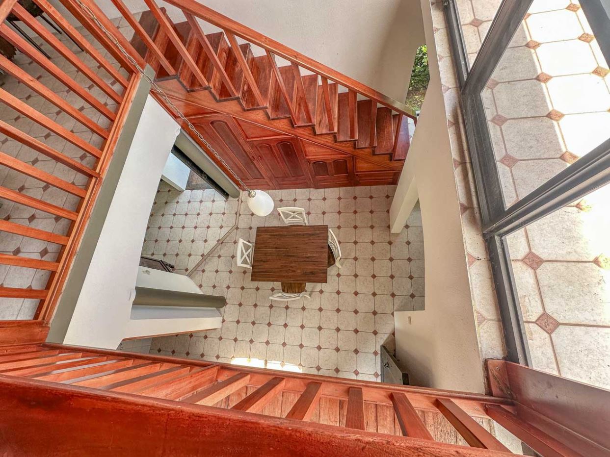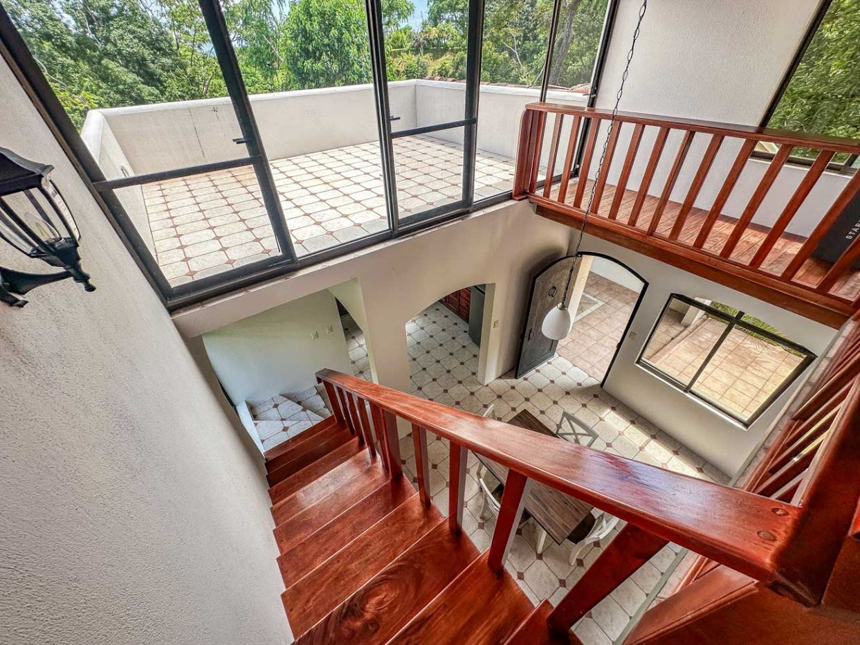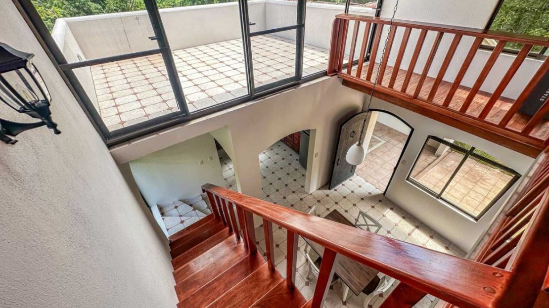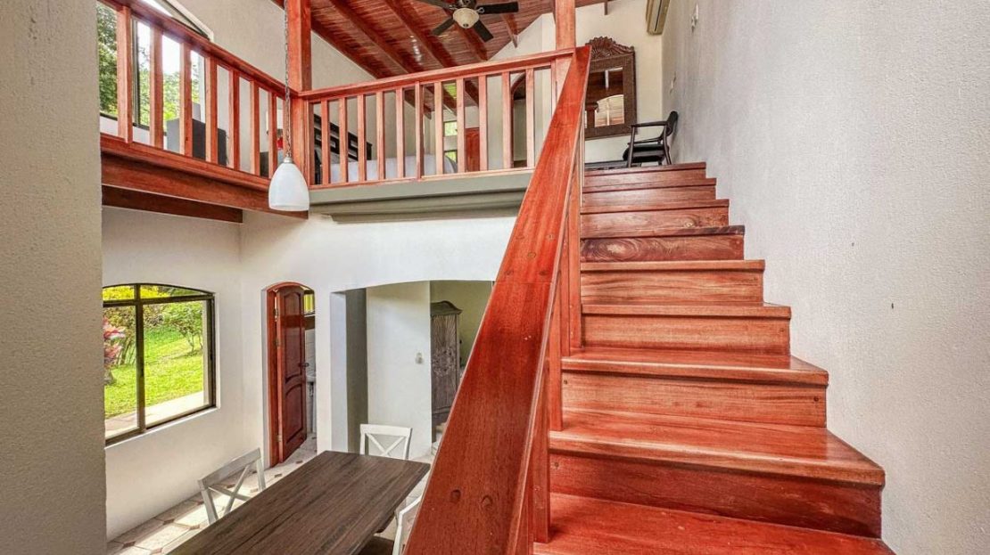 The home’s lower level holds a big and fully equipped kitchen, masterfully designed with ample storage and counter space. The kitchen opens to a central dining area and then a large & spacious living space which can be shaped to fit any desire. Outside, a large covered deck invites you to enjoy the peace & views under the protection from the midday sun and passing rain showers – but sunny sections are also available if you choose to catch a tan! A staircase ascends to the upper floor and the loft master bedroom and shower & jacuzzi bath ensuite – this upper floor loft is fully open and leads to a sunny outdoor terrace which is exposed by wall-to-wall panoramic windows. Imagine waking up to the sounds of a stirring jungle as you walk onto the terrace to glimpse the pastel colors of a stirring dawn under the roar of the jungle chorus…this is paradise.