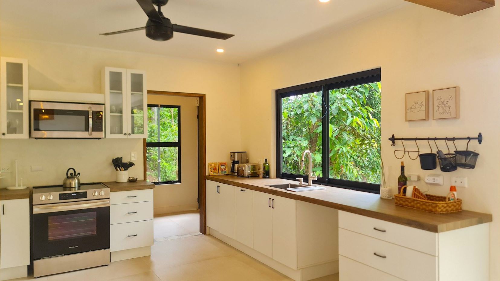 Enjoy sweeping jungle views and partial ocean vistas from both levels of the home. A second building pad provides room to expand — perfect for a guesthouse, rental units, or caretaker’s quarters. The property is also within walking distance of a canyon and river, adding to its natural charm and adventure appeal.