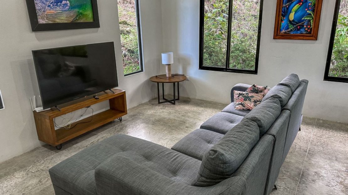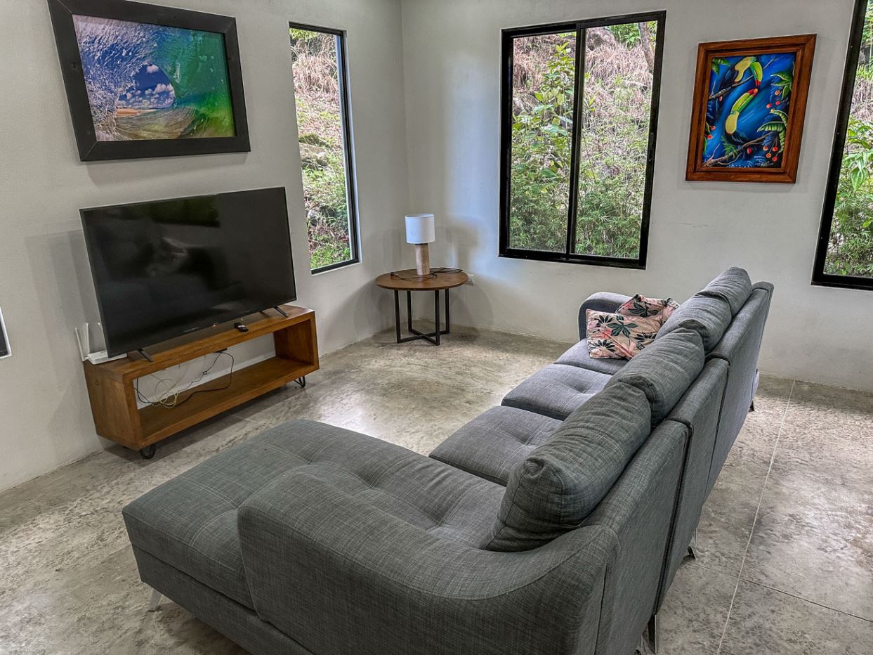 This large 1.24-acre property is located just off Calle Principal, a short distance from the heart of Ojochal and about 4km from the Costanera highway. Unlike the built-up landscapes of central Ojochal under 1km away, this is a mostly rural area with scattered homes and wide expanses of fields, farms and jungles all around the property. A prepared and partly paved road picks you up at the Costanera, takes you over a brand-new bridge, swings past the commercial areas of Ojochal and brings you to the large gravel carpark immediately in front of the home. The gate provides safety and peace of mind.