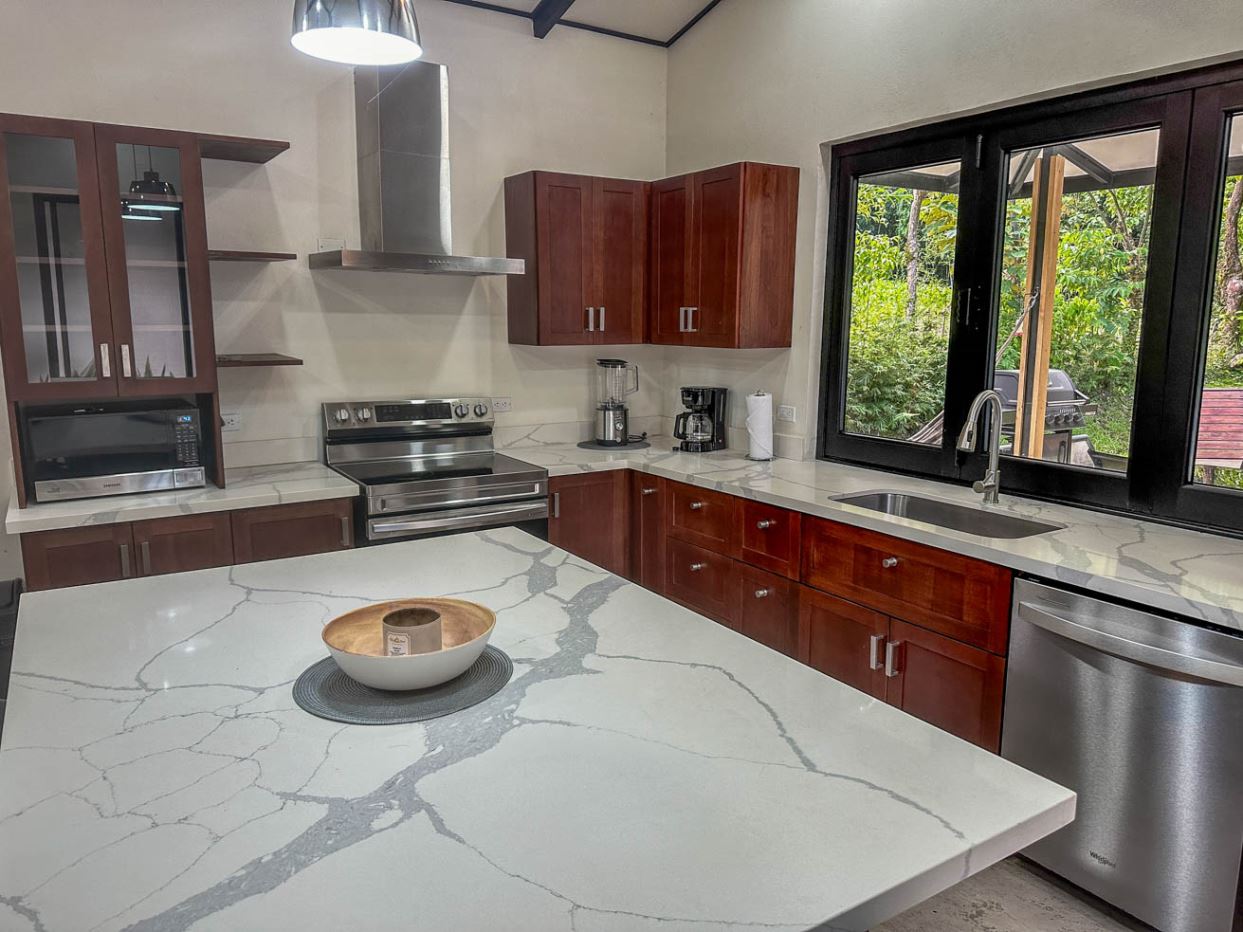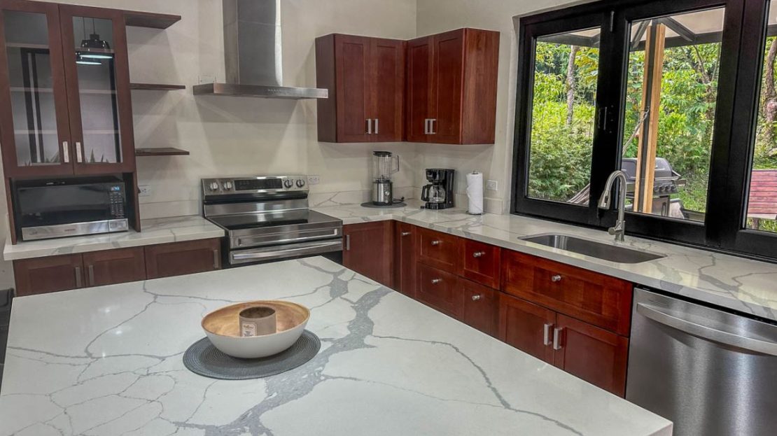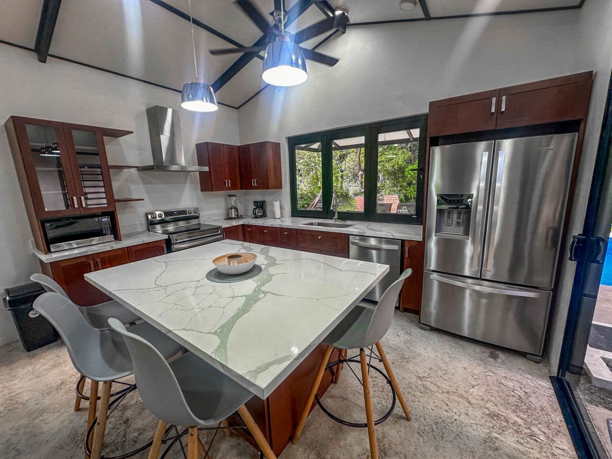 Top-rated restaurants, cafes, tourist shops, supermarkets, barbers, pickle-ball, yoga studios, schools, a library, and many other amenities are located in and around Ojochal, just over a kilometer from the home. A few more kilometers will bring you to Plaza Ventanas with her gas station, dentist & doctors, lawyers & real estate professionals, cafes, restaurants, tourist shops and even a mini water park (not to mention the giant dinosaur statues)! Playa Ventanas, with her thundering sea caves, is 7km away while the wild & untamed Playa Tortuga and the neighboring turtle rescue center are even closer. Another 15 minutes will bring you to the large service town of Uvita with her services, amenities and world-famous Marino Ballena National Park – SCUBA, sport fishing, adventure & eco activities, or beach fun await!