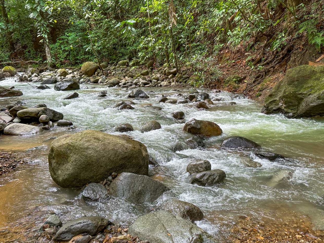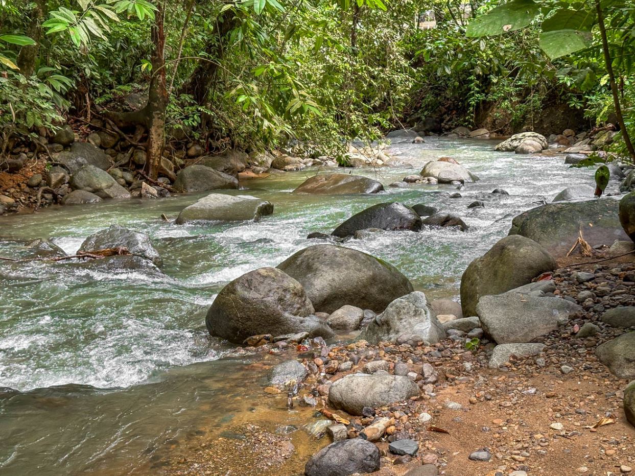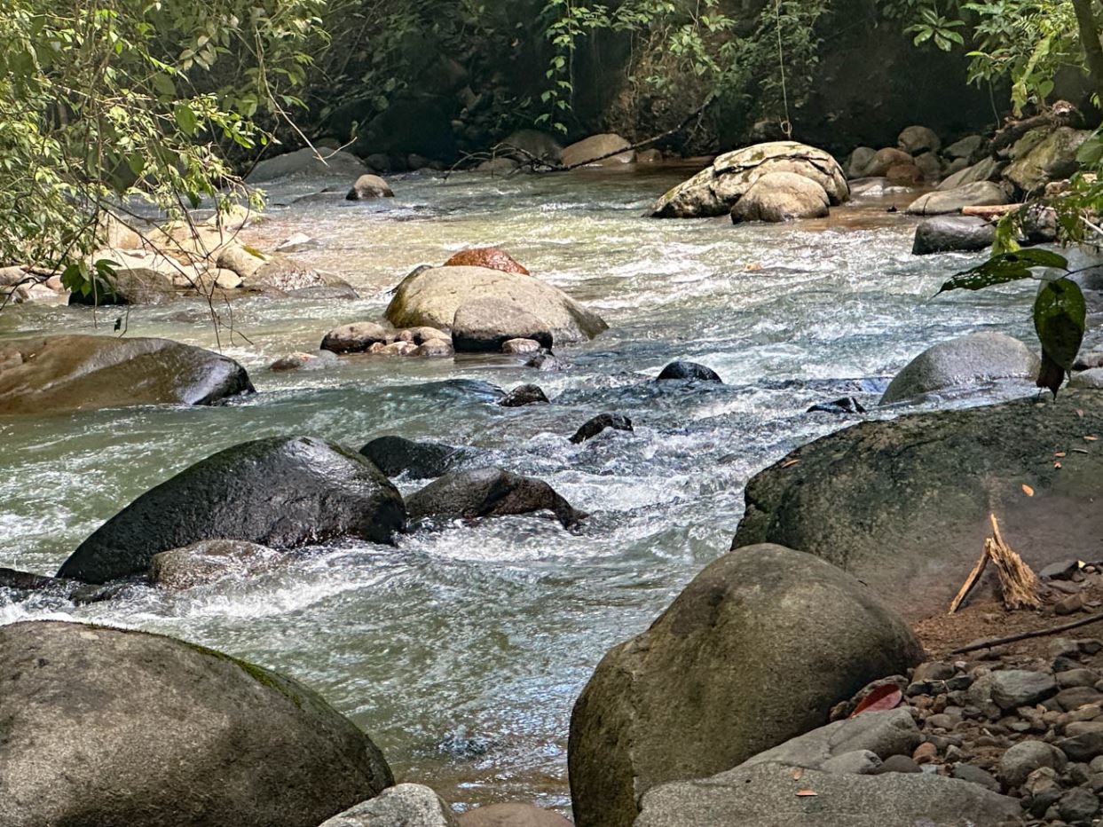 A prepared trail leads from the backyard straight into the jungle wilds. Soaring trees, brilliant flowers, tropical plants, climbing vines and the stunningly rich biodiversity of a lowland rainforest sit a mere 30-second walk away from your living room! Monkeys, macaws, sloths, anteaters, brilliant blue morpho butterflies and many other jungle critters will be your new neighbors. Descending into the valley, a briskly flowing mountain river blesses with her cool & clean waters – a few strategically placed rocks will create an amazing, natural swim hole to the delight of your family and guests. Can you imagine cooling off in the magical water, a hot coffee or refreshing drink in hand, while your visitors are marveling at the amazing Costa Rican jungle & animals that surround in every direction?