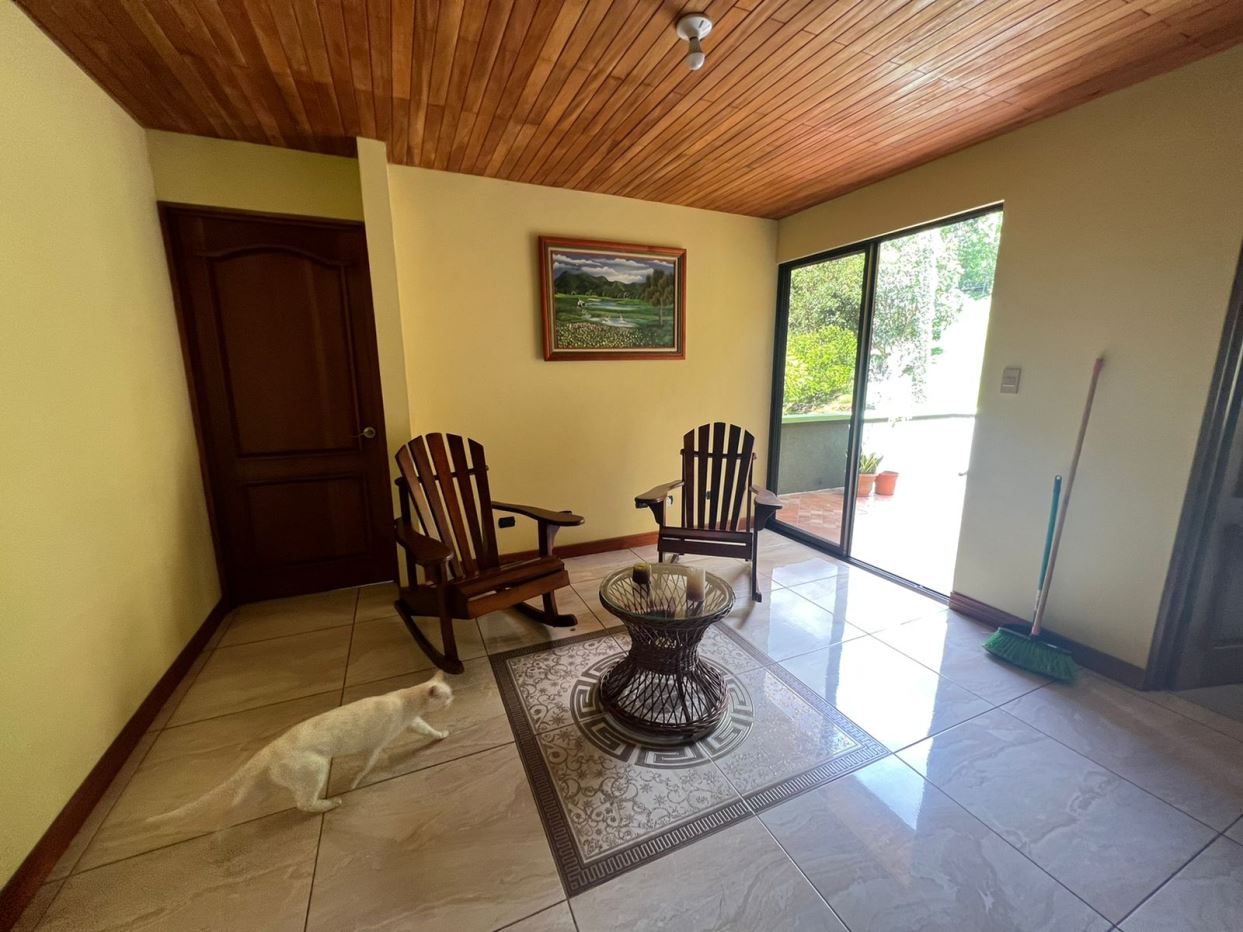 MM Descubre la serenidad y confort en plena armonía con la naturaleza en ésta excepcional propiedad ubicada en Palmichal, Acosta, San José. La entrada, una rampa de 500 metros, te conduce a través de la residencia, rodeada de vegetación natural con árboles frutales y montañas, bordeada por el río Jorco en la parte posterior. La casa, de dos niveles con cielos rasos de tablilla de madera y gypsum, resalta por sus ventanales, balcones y una refrescante piscina. La sala y el comedor espaciosos se conectan al segundo piso mediante una elegante escalera de hierro forjado, ofreciendo vistas panorámicas a los paisajes naturales. La habitación principal cuenta con baño y jacuzzi, closet de madera y amplios ventanales, mientras que tres habitaciones adicionales comparten dos baños. La cocina equipada presenta muebles de granito y gabinetes elegantes. La propiedad incluye espacio/oficina adaptable, estacionamiento para cinco vehículos y área de lavandería. Rodeada de zonas verdes, brinda paz y tranquilidad con vistas al río, criadero de peces y las montañas. La ubicación en Palmichal, Acosta, San José, a 5 km de servicios, ofrece un entorno residencial con acceso a supermercados y farmacias cercanas, así como instituciones educativas como la Escuela de Palmichal y el Colegio Técnico Profesional de Acosta. Aunque la zona tiene un ambiente rural, brinda espacios recreativos al aire libre, como el Parque Nacional Los Quetzales, para disfrutar de la naturaleza.
