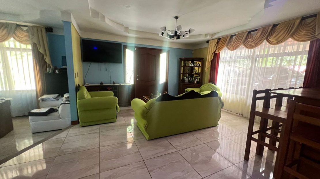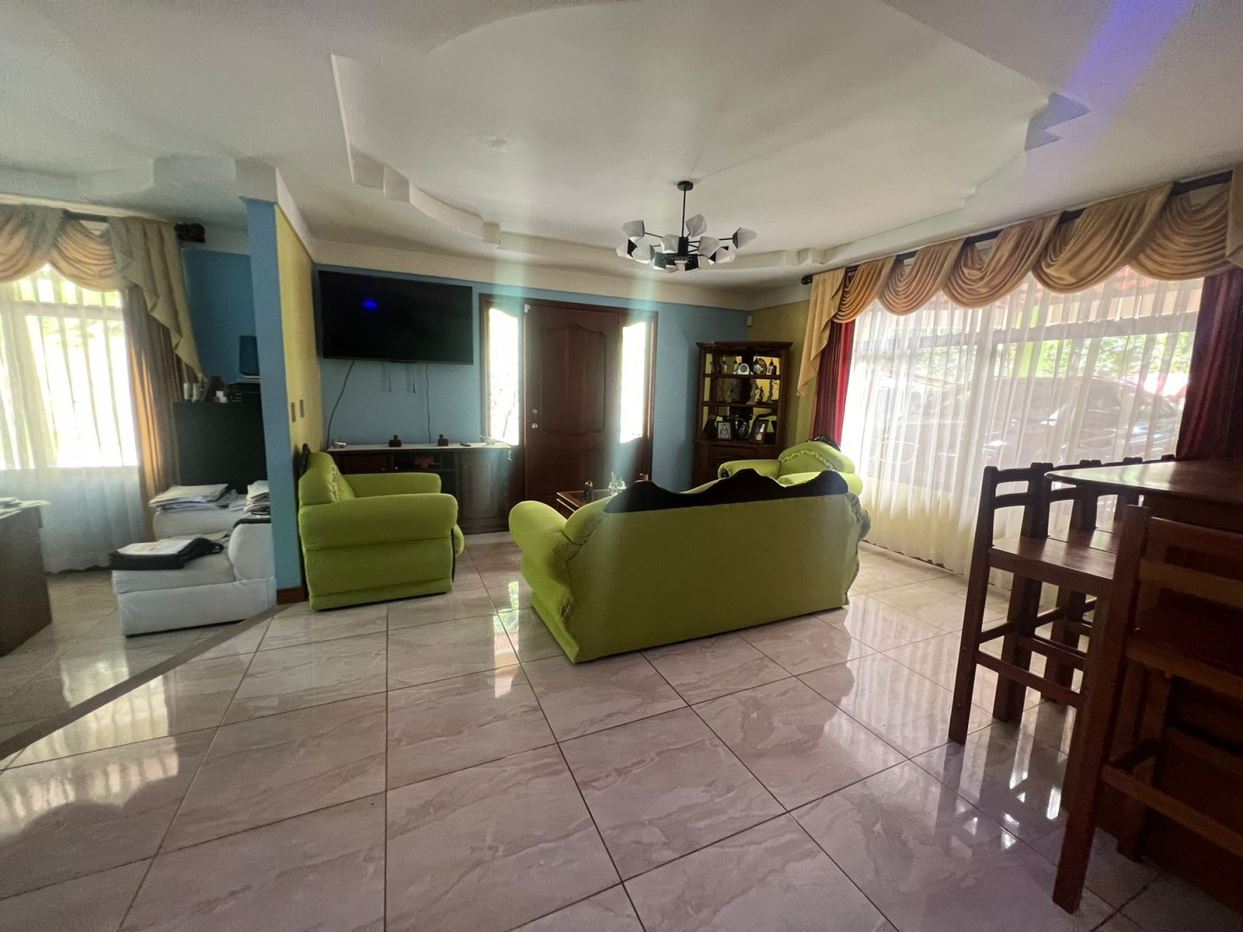Distribución Interna: Casa con la siguiente distribución 2 Salas, 1 comedor, 1cocina, 4 habitaciones, 3.5 baños, 1 área de pilas, 2 balcones y 5 garajes.