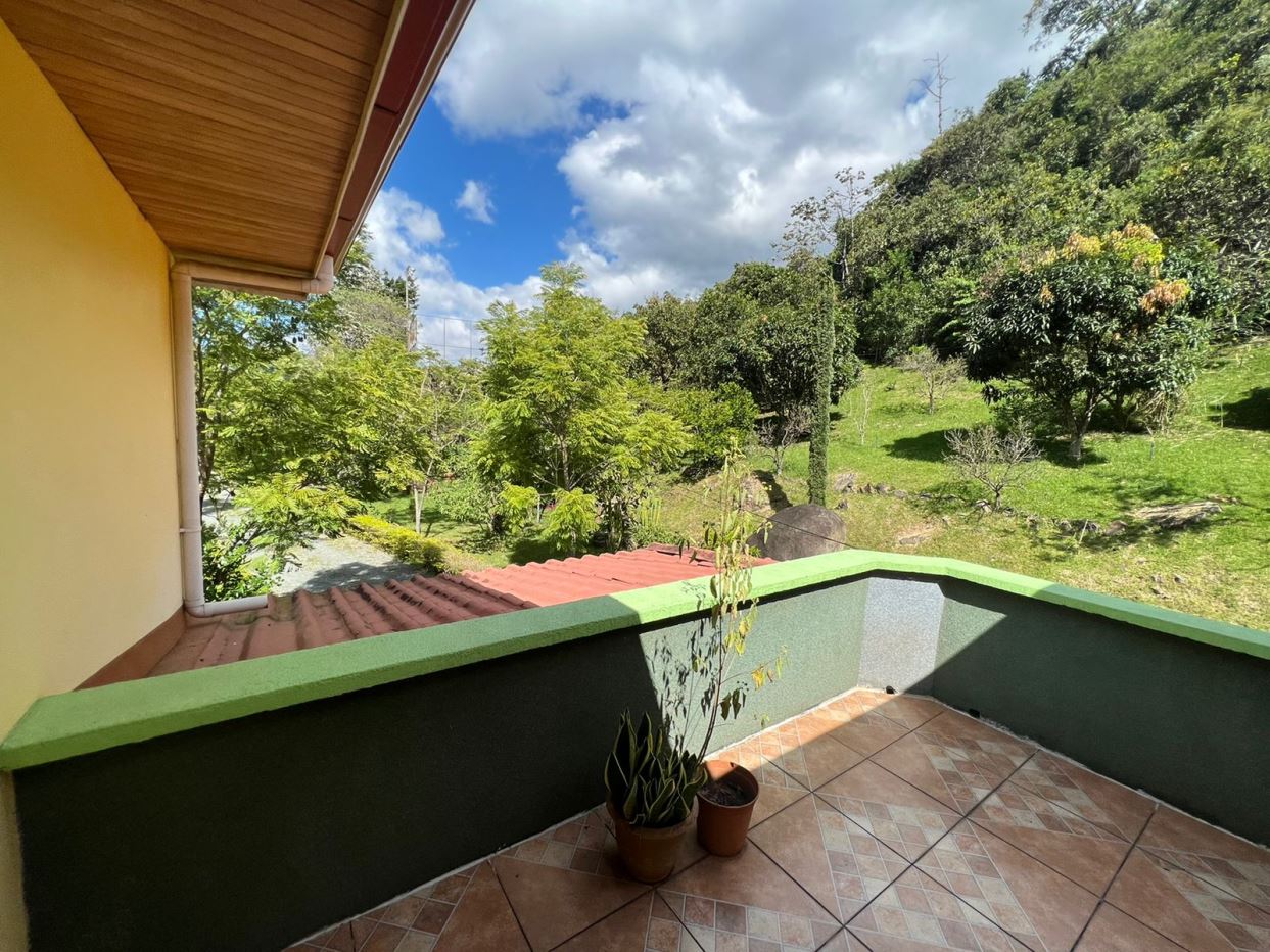 MM Discover serenity and comfort in full harmony with nature in this exceptional property located in Palmichal, Acosta, San José. The entrance, a 500 meter ramp, leads you through the residence, surrounded by natural vegetation with fruit trees and mountains, bordered by the Jorco River at the back. The house, on two levels with wooden clapboard and gypsum ceilings, stands out for its windows, balconies and a refreshing pool. The spacious living room and dining room are connected to the second floor by an elegant wrought iron staircase, offering panoramic views of the natural landscapes. The main room has a bathroom and jacuzzi, a wooden closet and large windows, while three additional rooms share two bathrooms.
