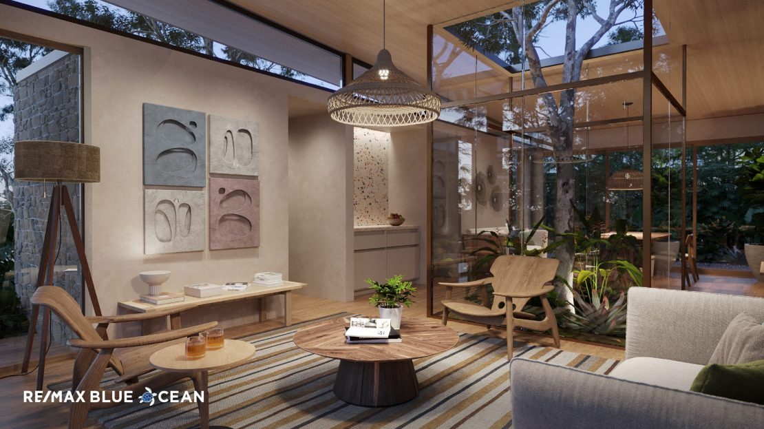 The project consists of 16 boutique residences, each designed with clean lines, natural textures, generous heights, and abundant ventilation. The master plan is intentionally discreet—“in the middle of the jungle”—yet fully serviced with high-quality, modern infrastructure: fiber-optic internet, underground utilities, wastewater treatment (Bionest), and 24/7 security with controlled access.