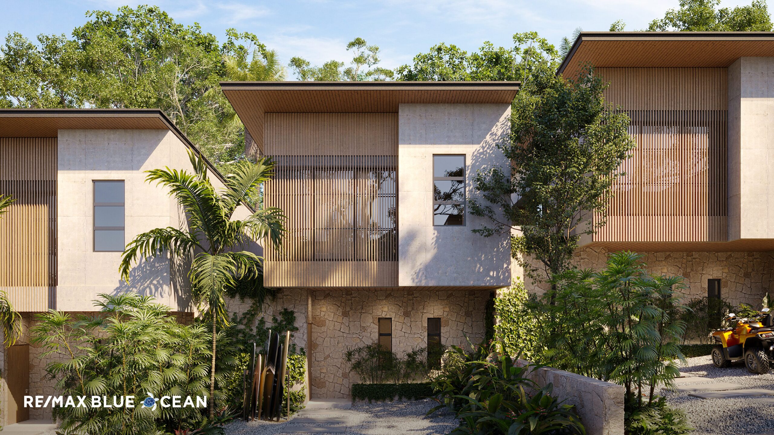 Each home is a 197 m² two-level design, built in block and concrete and titled under condominium law. Residences include: