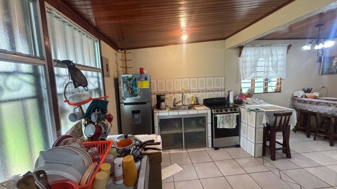 This cozy home is found in a neighborhood with no through street in the Atenas countryside features a nice size front yard with plenty of parking and space for entertaining under the large front porch. The home features 2 bedrooms with 1 bathroom and an extra room for a third bedroom or an office. There is plenty of storage area.