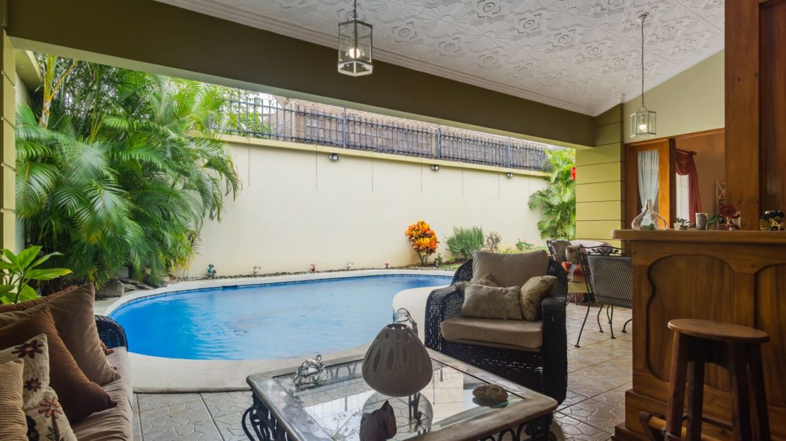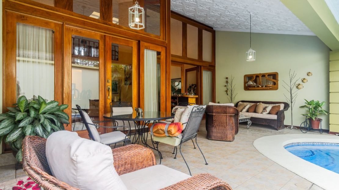 Desde aquí, acceda directamente a la terraza y la refrescante piscina, rodeadas de un patio con zona verde que evoca la exuberante naturaleza costarricense.