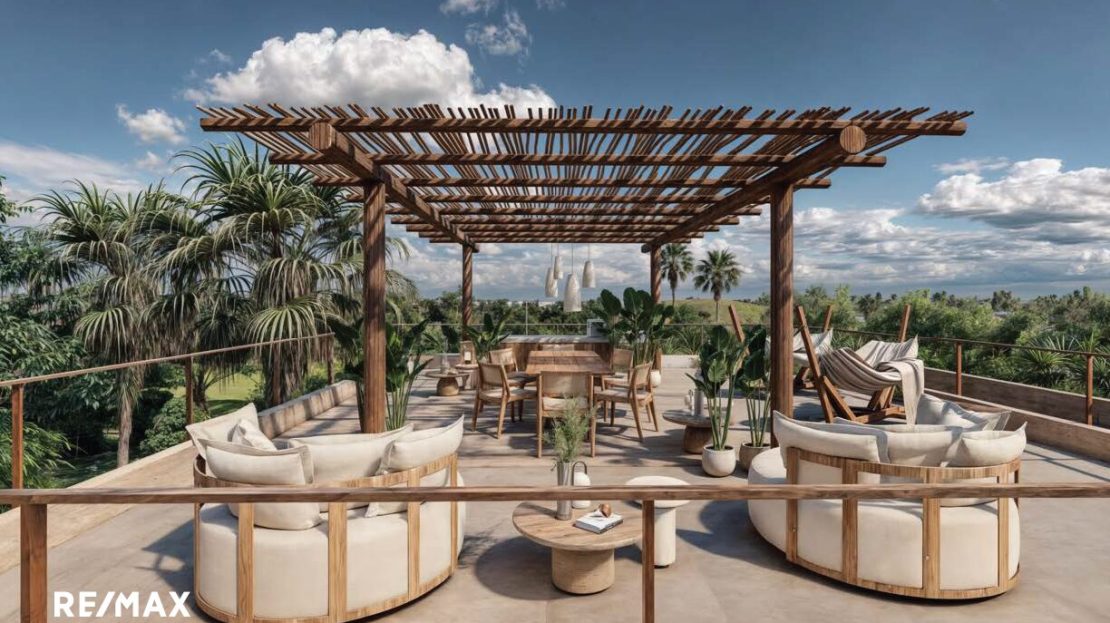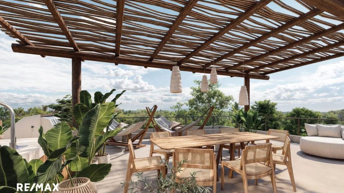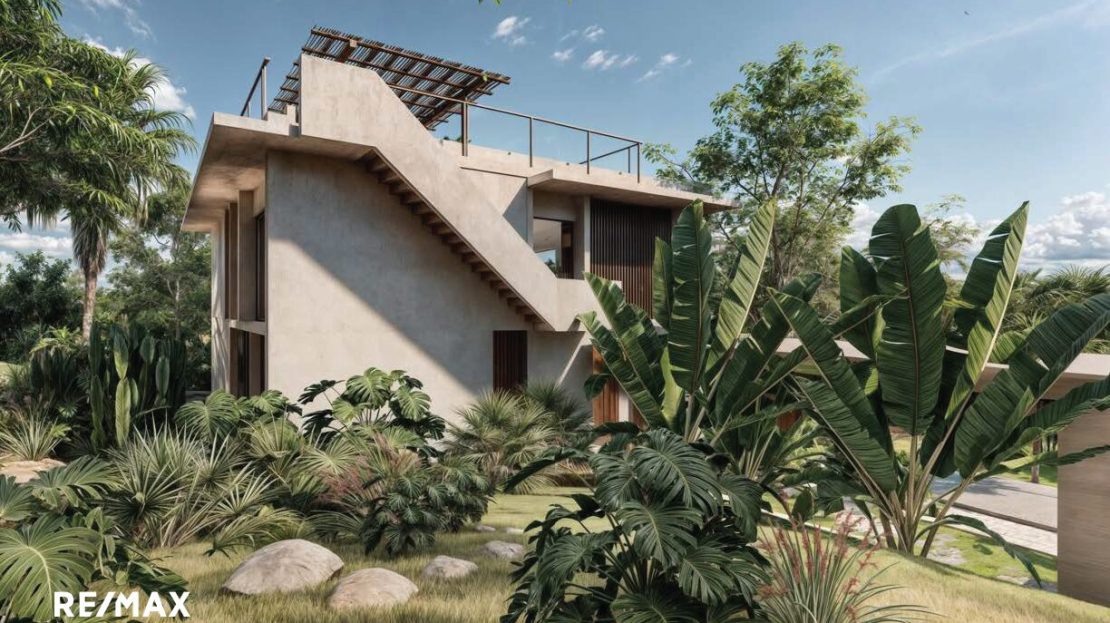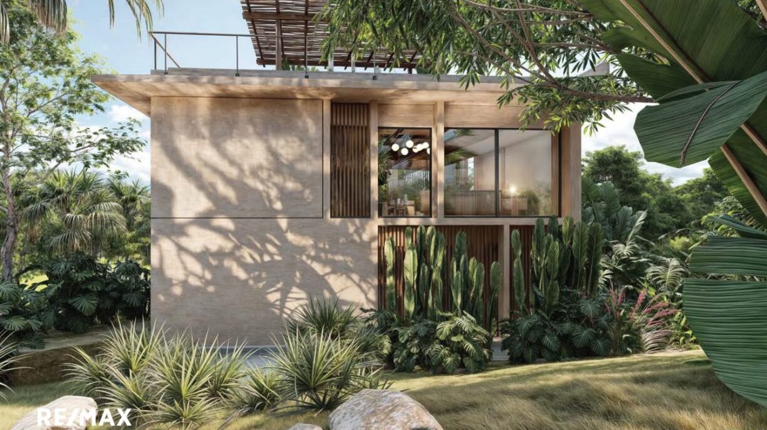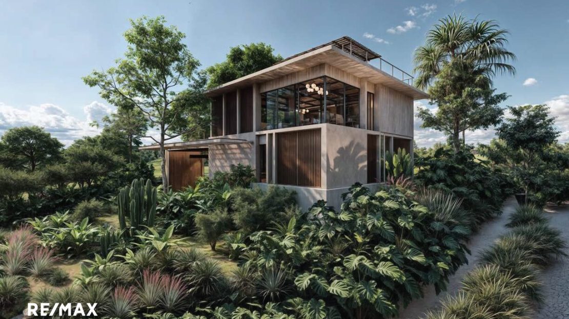 Cette maison de 3 chambres fait partie de Shift Esperanza, un projet résidentiel régénératif pensé autour de la connexion, de la durabilité et de l’esthétique. L’architecture est sobre et intelligente : ventilation naturelle pour garder la fraîcheur, vitrages solaires pour réduire la consommation énergétique, espaces communs ouverts et une terrasse panoramique sur le toit pour vivre pleinement en harmonie avec la nature.