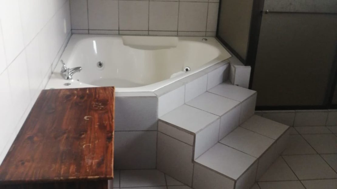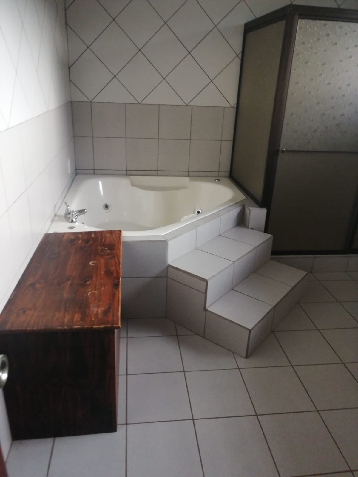 Large master bedroom with jacuzzi, private bathroom, and scenic views