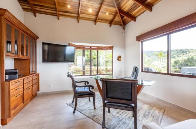 Furnished elegant country house located in the gated community of Oro Monte in Naranjo de AlajuelaThe house is built with the highest quality materials and features high coffered ceilings and spacious spaces. It has 3 bedrooms, 3 bathrooms and a half bathroom, as well as a living room and a beautiful kitchen with an island and pantry. In addition, it has a laundry area and covered parking for 2 vehicles.