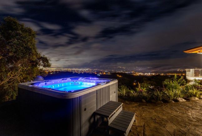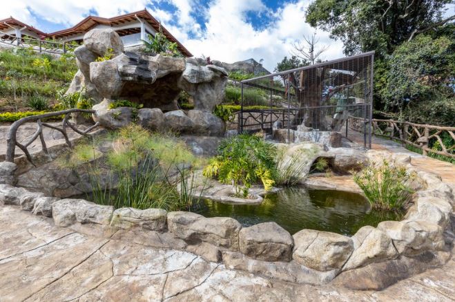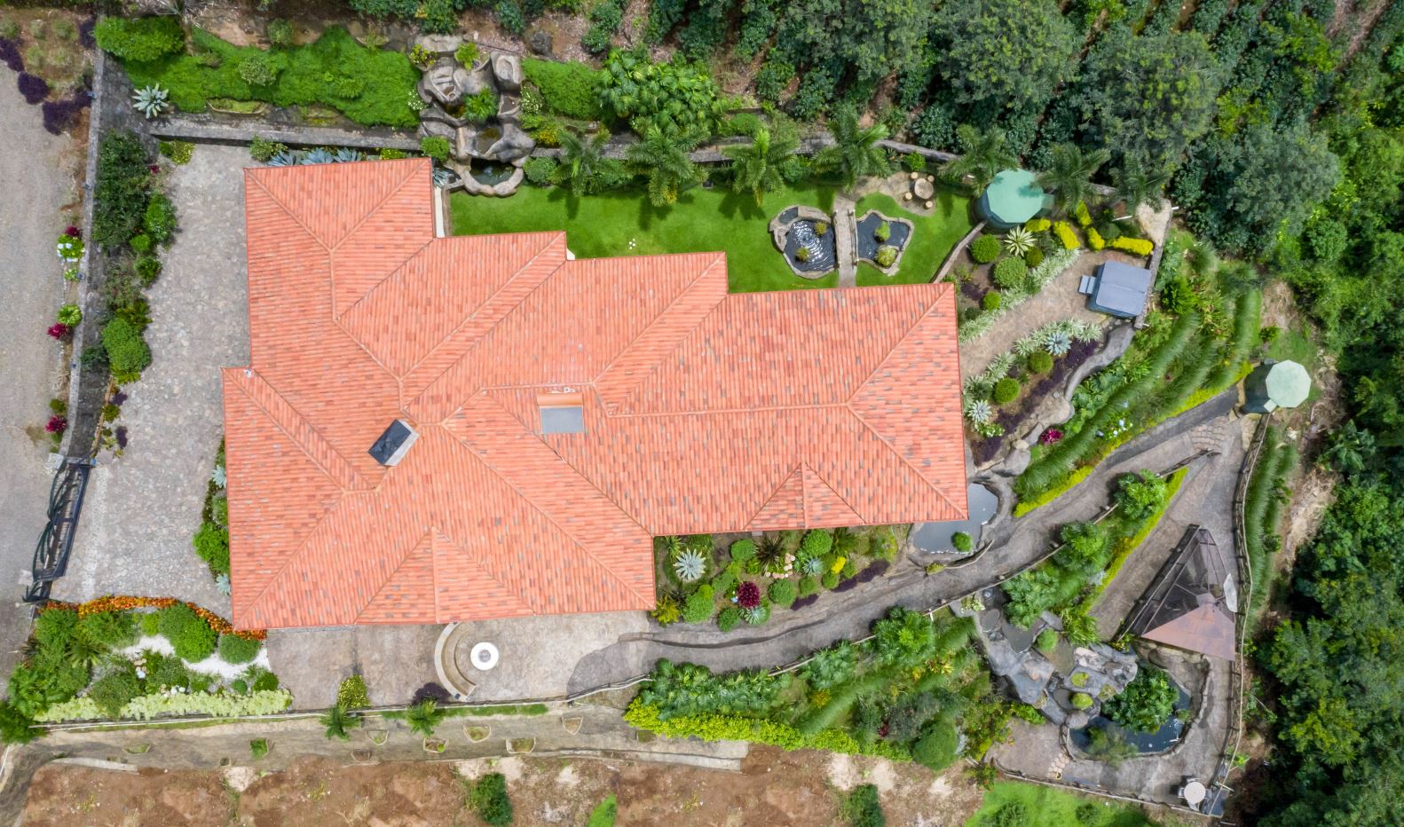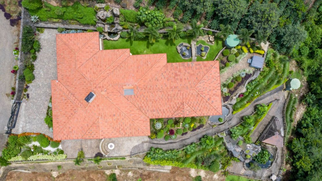 The house has a construction of 500 square meters or 5,382 square feet and sits on a lot of 10,000 square meters or 2,471 acres. The gardens are impressive and offer spectacular views of the city and the mountains. There are also man-made waterfalls, a jacuzzi, and security cameras to ensure your safety.