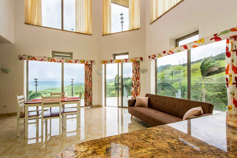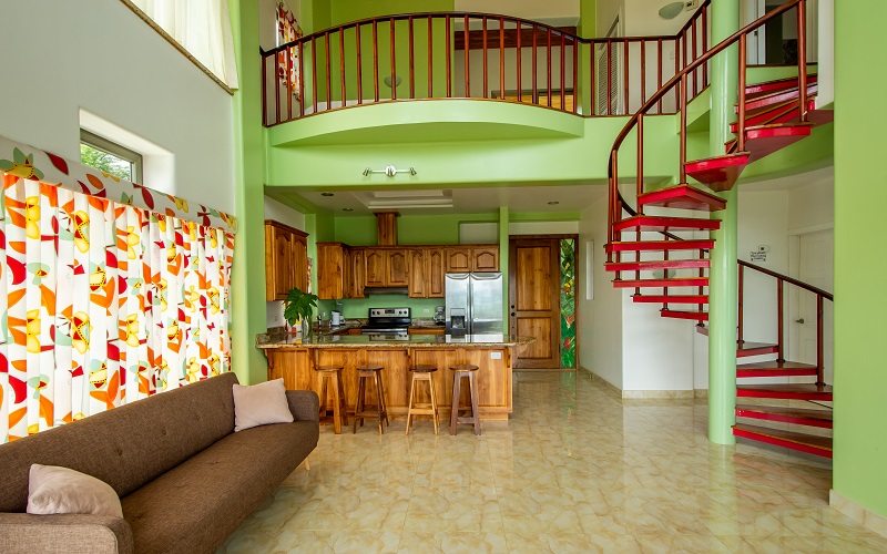 Set on a private hilltop overlooking Lake Arenal, this condo offers stunning views of the lake and the Arenal and Tenorio volcanoes.
