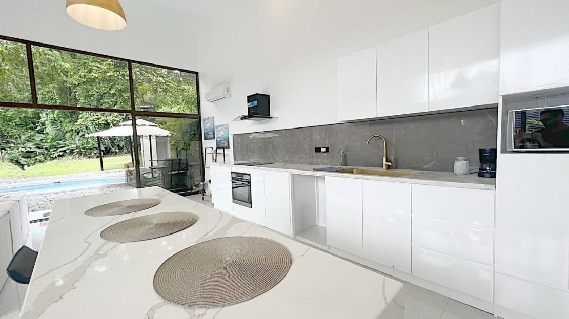 Roses Villa is an exquisite luxury property located in Uvita, Costa Rica, just minutes from Uvita Beach and the Ballena Marine National Park. Set on an expansive 1,515 m² lot, this exceptional villa offers breathtaking jungle views and unparalleled privacy. With 200 m² of beautifully designed living space, the property combines modern luxury with the natural beauty of the surrounding tropical environment. The villa’s open-concept layout features a spacious living room with soaring 4-meter-high ceilings and large windows that seamlessly connect the interior with the exterior. These windows open up to the lush gardens and the stunning 6 x 4-meter design pool, offering an indoor-outdoor living experience that is perfect for relaxation and entertaining. The seamless flow between the living areas, pool, and garden creates a serene atmosphere that invites you to unwind and enjoy the tropical climate. Roses Villa boasts three generously-sized bedrooms, each designed for maximum comfort and privacy. The two bathrooms are finished with high-end, luxurious tiles, providing an elegant and modern touch. The villa’s thoughtful design ensures that every room is bathed in natural light and offers incredible views of the surrounding jungle and garden. In addition to the spacious interior, the tropical garden surrounding the property is a true highlight. It includes an outdoor bathtub, perfect for those who want to relax and immerse themselves in nature in a private and tranquil setting. The garden is meticulously landscaped, providing a peaceful oasis that enhances the villa’s appeal as an exclusive retreat. Key Features: 1,515 m² of land with 200 m² of luxury living space, Prime location close to Uvita Beach and Ballena Marine National Park, 6 x 4-meter design pool and large windows connecting indoor and outdoor spaces, Three spacious bedrooms and two bathrooms with high-end finishes, Expansive 4-meter-high living room with stunning views, Tropical garden with an outdoor bathtub for private relaxation, Exceptional privacy and proximity to local amenities, beaches, and natural parks. Roses Villa offers a unique opportunity in Costa Rica’s competitive real estate market. Whether you’re looking for a permanent residence, vacation home, or an investment property, this villa provides a perfect blend of luxury, privacy, and a prime location in one of Costa Rica’s most sought-after areas. Its combination of design, spaciousness, and natural beauty makes it an exceptional choice for discerning buyers.