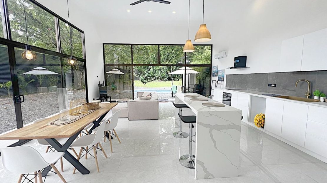 Roses Villa es una exquisita propiedad de lujo situada en Uvita, Costa Rica, a pocos minutos de la playa de Uvita y el Parque Nacional Marino Ballena. Ubicada en un amplio terreno de 1.515 m², esta excepcional villa ofrece impresionantes vistas de la selva y una privacidad sin igual. Con 200 m² de espacio habitable bellamente diseñado, la propiedad combina el lujo moderno con la belleza natural del entorno tropical que la rodea. La distribución de concepto abierto de la villa cuenta con un amplio salón con techos altos de 4 metros y grandes ventanales que conectan a la perfección el interior con el exterior. Estas ventanas se abren a los exuberantes jardines y a la impresionante piscina de diseño de 6 x 4 metros, ofreciendo una experiencia de vida interior-exterior perfecta para relajarse y entretenerse. El flujo continuo entre las zonas de estar, la piscina y el jardín crea un ambiente sereno que invita a relajarse y disfrutar del clima tropical. Roses Villa cuenta con tres dormitorios de generosas dimensiones, diseñados para ofrecer el máximo confort y privacidad.Los dos cuartos de baño están acabados con lujosos azulejos de alta gama, que aportan un toque elegante y moderno.El cuidado diseño de la villa garantiza que todas las habitaciones estén bañadas por la luz natural y ofrezcan increíbles vistas de la selva y el jardín circundantes.Además del espacioso interior, el jardín tropical que rodea la propiedad es un verdadero punto culminante.Incluye una bañera exterior, perfecta para quienes deseen relajarse y sumergirse en la naturaleza en un entorno privado y tranquilo.El jardín está meticulosamente ajardinado, proporcionando un oasis de paz que realza el atractivo de la villa como refugio exclusivo.Características principales:1.515 m² de terreno con 200 m² de espacio habitable de lujo, Ubicación privilegiada cerca de la playa de Uvita y el Parque Nacional Marino Ballena, Piscina de diseño de 6 x 4 metros y grandes ventanales que conectan los espacios interiores y exteriores, Tres amplios dormitorios y dos baños con acabados de alta gama, Amplio salón de 4 metros de altura con impresionantes vistas, Jardín tropical con una bañera exterior para relajarse en privado, Excepcional privacidad y proximidad a los servicios locales, playas y parques naturales. Roses Villa ofrece una oportunidad única en el competitivo mercado inmobiliario de Costa Rica. ones, o una propiedad de inversión, esta villa ofrece una mezcla perfecta de lujo, privacidad y una ubicación privilegiada en una de las zonas más codiciadas de Costa Rica. Su combinación de diseño, amplitud y belleza natural hace que sea una opción excepcional para los compradores más exigentes.