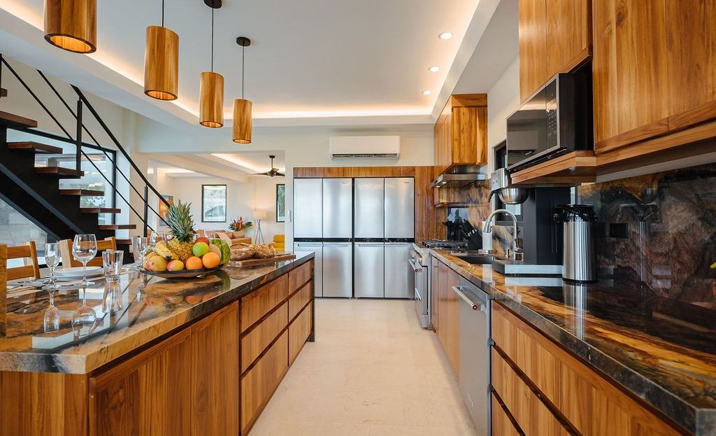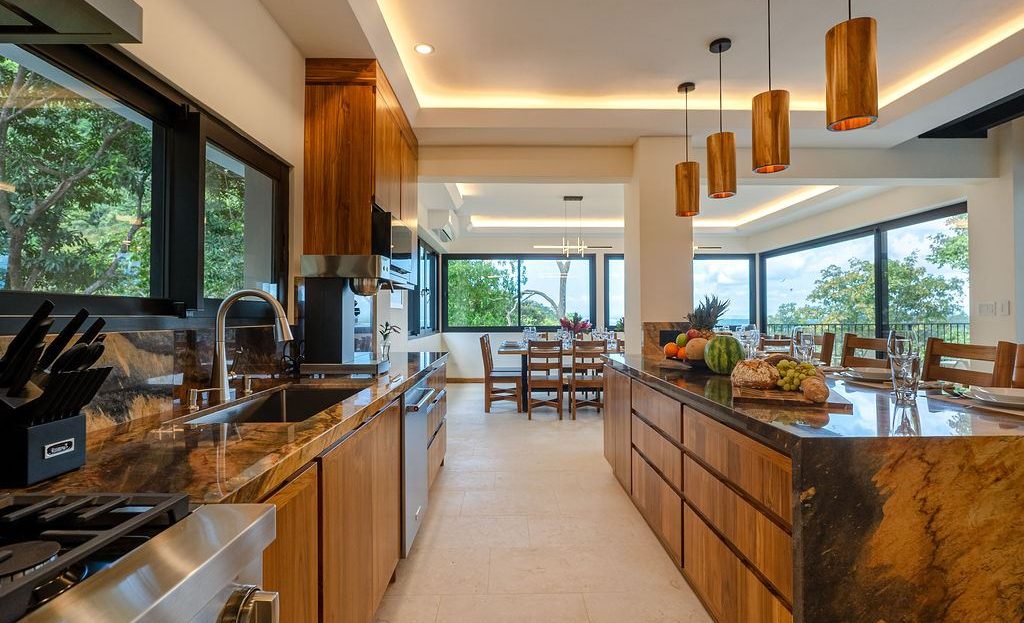 – Cocina gourmet y elegantes áreas de comedor, ideales para servicio de chef o eventos privados