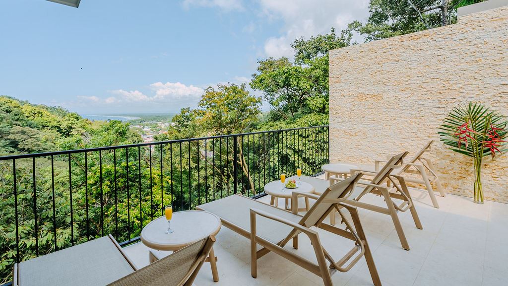 Desde las grandes terrazas o el solárium junto a la piscina, los huéspedes pueden disfrutar de espectaculares vistas al océano Pacífico y a la selva tropical circundante, mientras observan monos, perezosos, lapas y tucanes que visitan la propiedad con frecuencia. Las puestas de sol desde aquí son inolvidables — el lugar perfecto para organizar una barbacoa al aire libre mientras se conecta con la naturaleza en su máxima expresión.