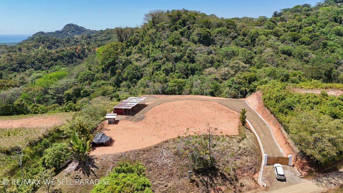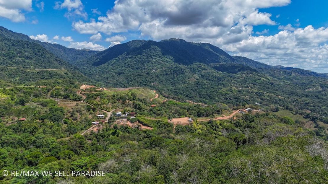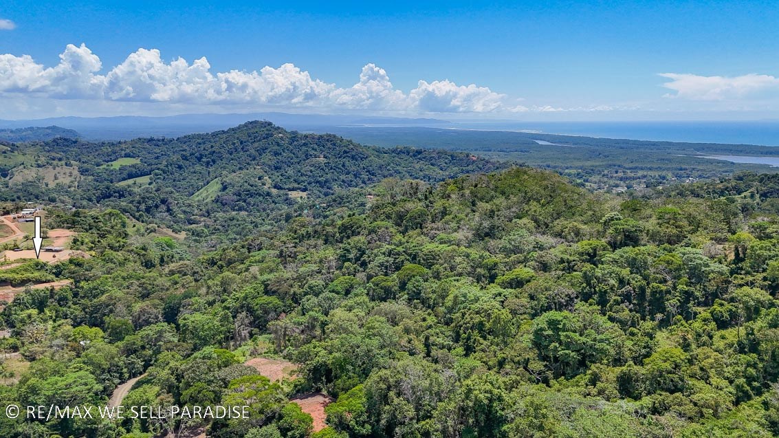 You will be on top of the world – this lot offers clear views of the Pacific Ocean including Cano Island, Terraba River and mangroves framed by lush valleys, farms and jungle covered hills. Turn around and the towering 1,300 metre (4,300 foot) coastal mountains amaze with their nearly vertical slopes, old growth jungle ridges and giant seasonal waterfalls. Clouds and mists often meander between their peaks and down their valleys, creating a surreal experience.