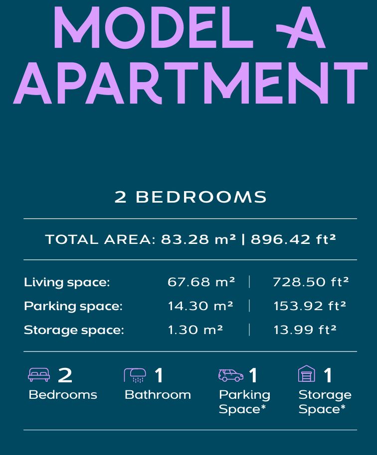 Discover comfort and convenience in this well-designed 2-bedroom apartment, perfect for modern living. The Model A Apartment offers smart use of space across a total of 83.28 m² (896.42 ft²) and includes everything you need for an easy, stylish lifestyle.