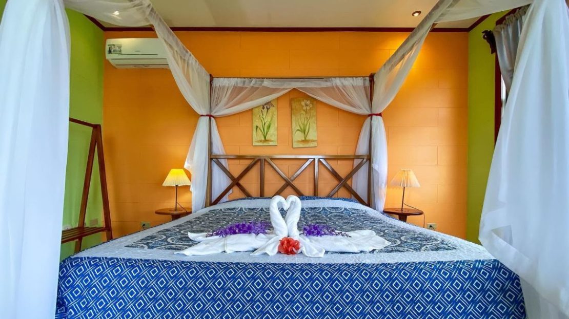 Arenal Garden Lodge cuenta con 8 habitaciones bellamente diseñadas, incluyendo 2 lujosas Suites con Jacuzzi, 2 cómodas Junior Suites, y 1 habitación adaptada para personas con discapacidades. También hay un apartamento con cocina completa, ideal para estadías prolongadas, además de una cabaña rústica remodelada dividida en dos habitaciones, cada una equipada con una kitchenette para mayor comodidad. La acogedora área de cafetería/recepción ofrece un espacio cálido y relajante para que los huéspedes disfruten del entorno.