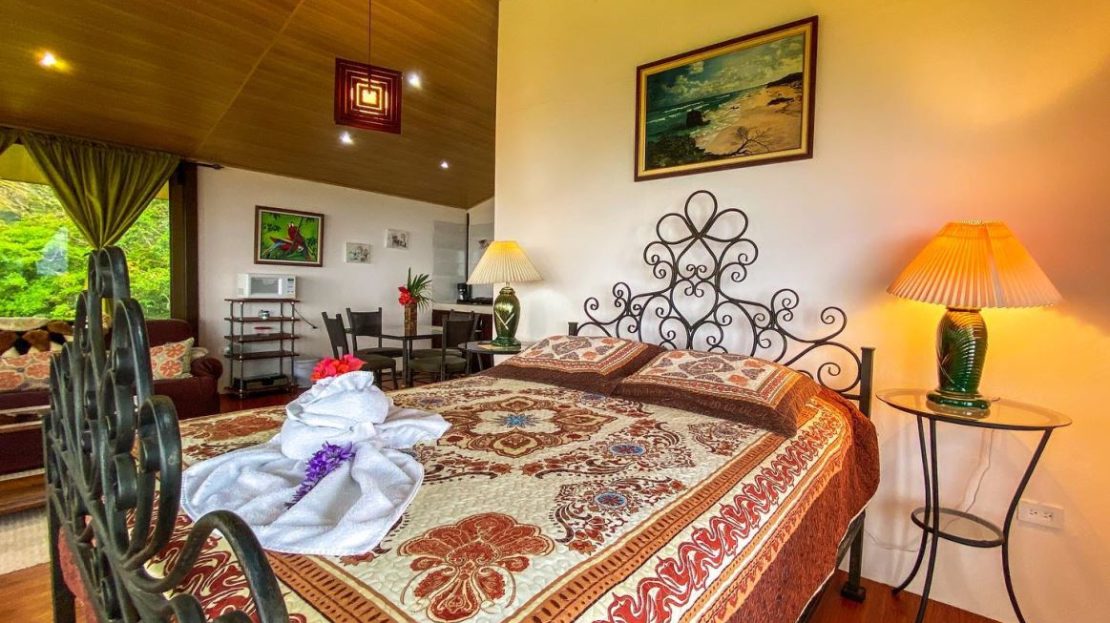 Located just a stone’s throw from the Arenal Volcano National Park, Arenal Garden Lodge is a charming family-owned B&B that offers an ideal retreat for nature lovers and adventure seekers alike. Nestled in the serene El Castillo area, this cozy lodge is perfectly positioned to provide panoramic views of both the iconic Arenal Volcano and the tranquil Lake Arenal.
