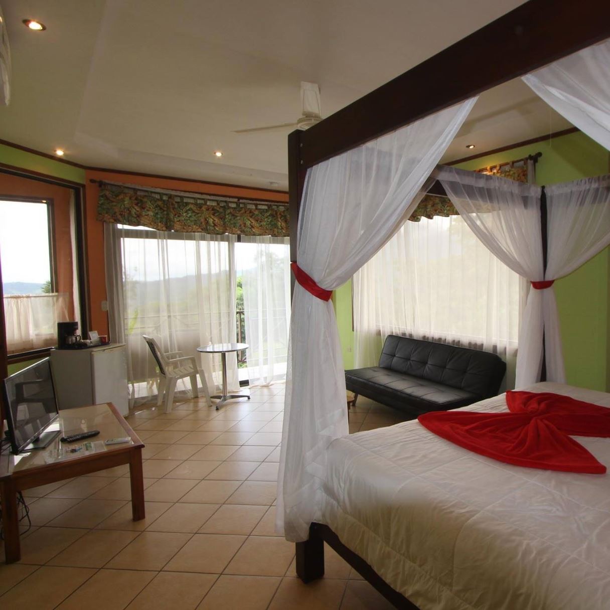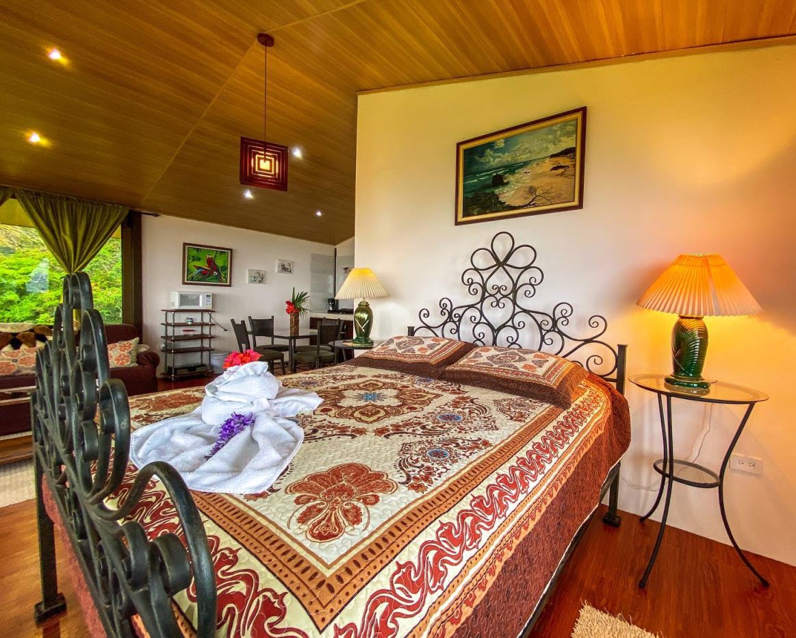 Ubicado a solo unos pasos del Parque Nacional Volcán Arenal, Arenal Garden Lodge es un encantador bed & breakfast de propiedad familiar que ofrece un refugio ideal tanto para los amantes de la naturaleza como para los buscadores de aventuras. Situado en la tranquila zona de El Castillo, este acogedor lodge está perfectamente posicionado para brindar vistas panorámicas del icónico Volcán Arenal y del sereno Lago Arenal.