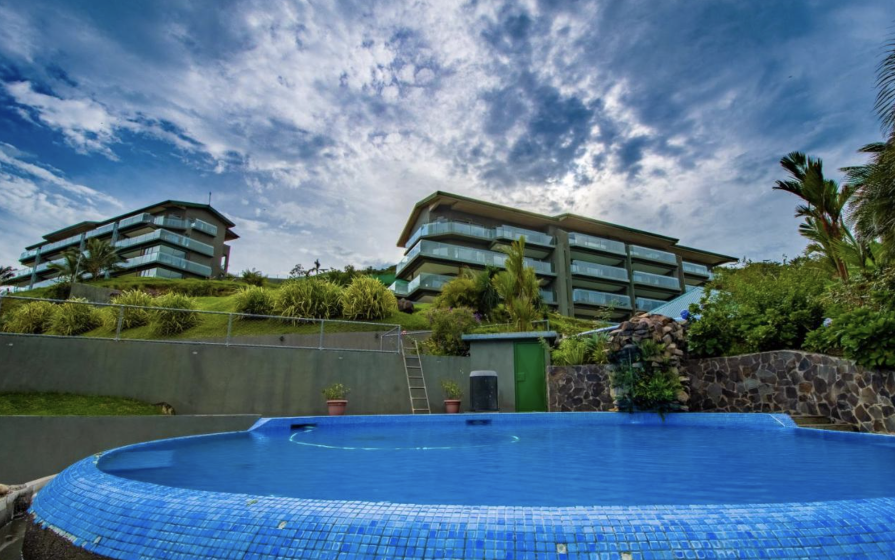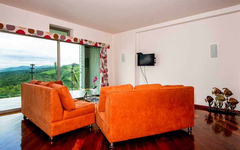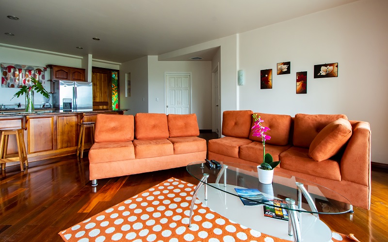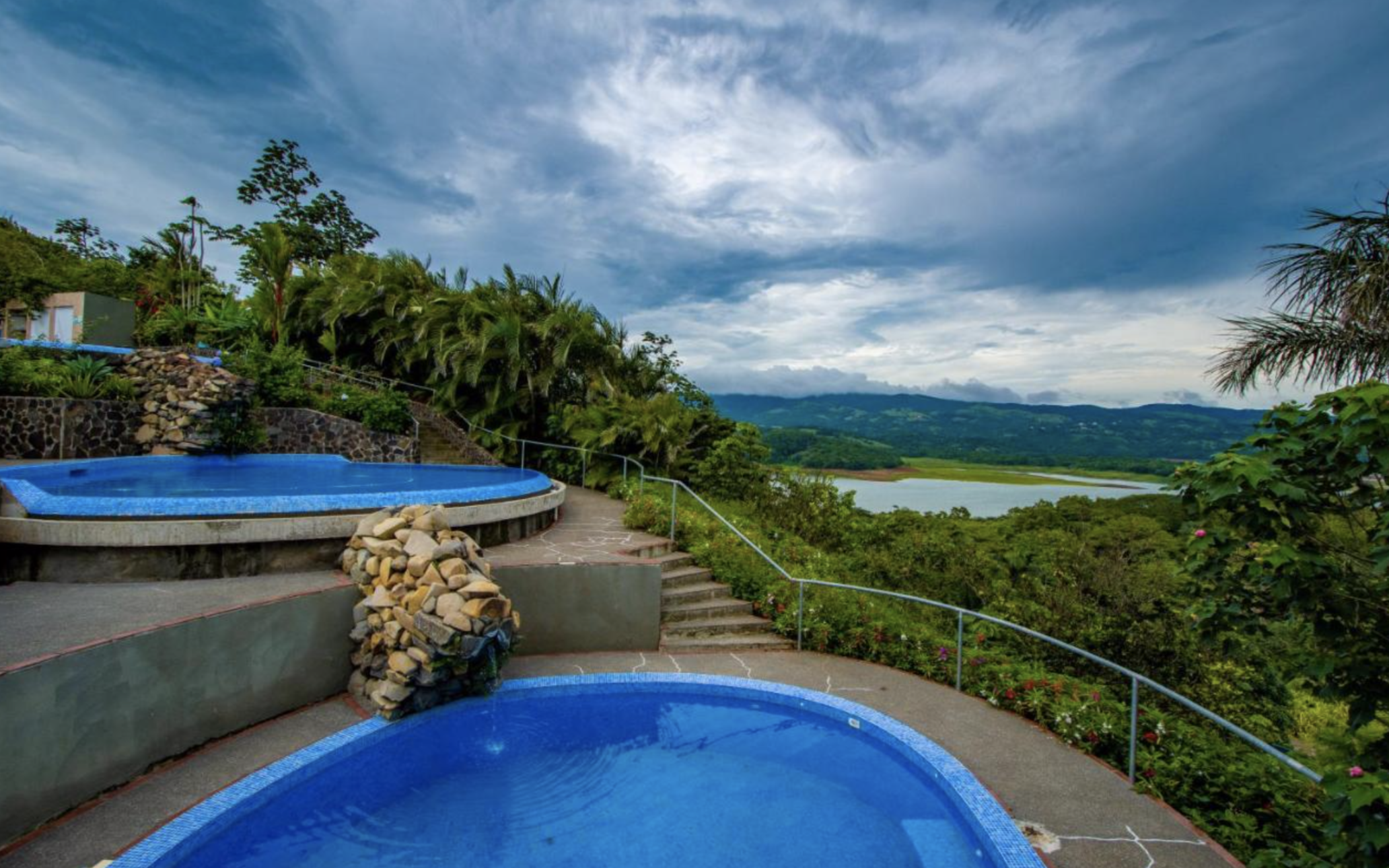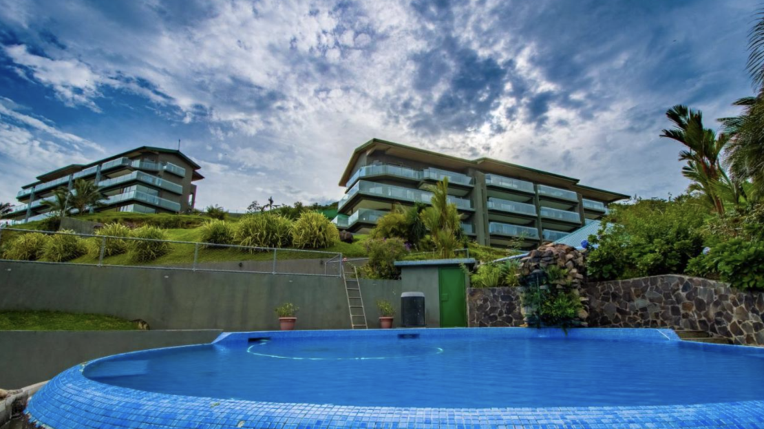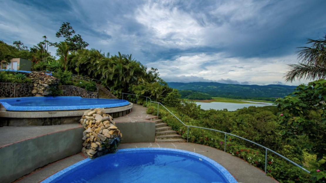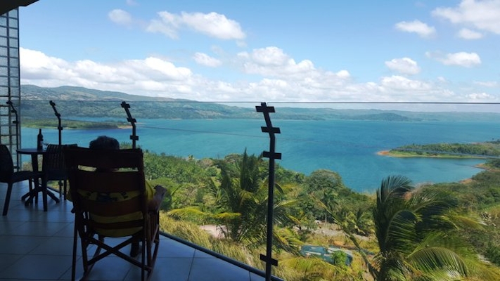 Set on a private hilltop overlooking Lake Arenal, this condo offers stunning views of the lake and the Arenal and Tenorio volcanoes.