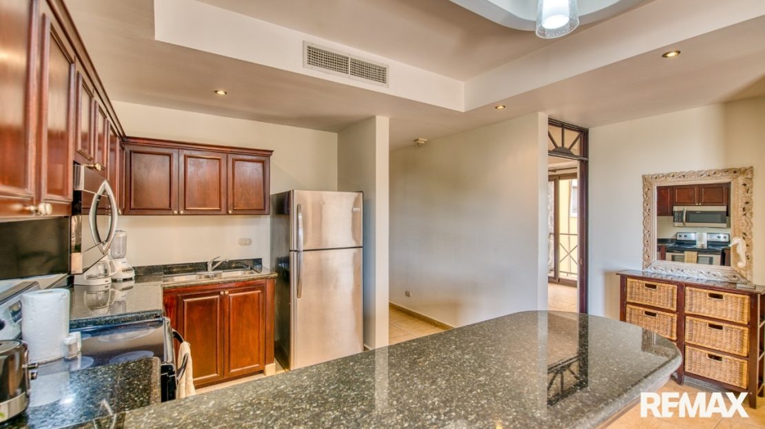 The open-concept living area boasts hardwood cabinetry, stainless steel appliances, making it perfect for entertaining or simply enjoying your tropical escape.