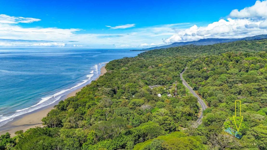 Access is seamless—the Costanera Highway sits just 50 meters from the front gate, reached via a smooth, gently rising public road. The property borders the Costanera, a public road, and a jungle stream that empties into the sands of Playa Ballena. Convenience, nature, and lifestyle come together effortlessly here.